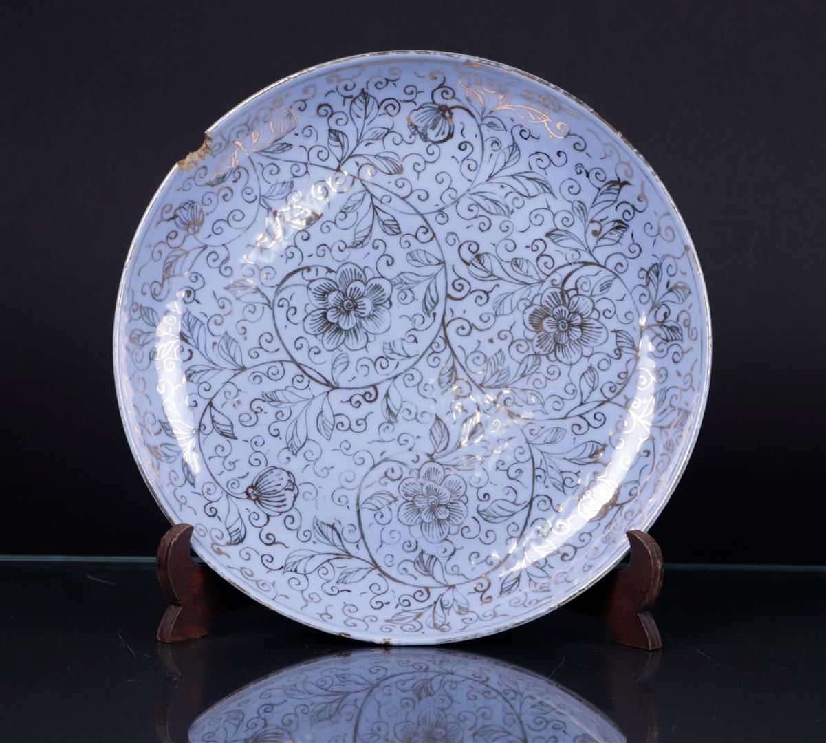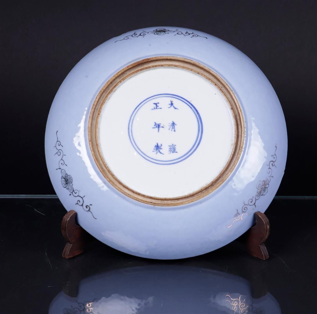 A blue glazed porcelain dish decorated with flowers in gold, marked Yongzheng. China, 19/20th century.