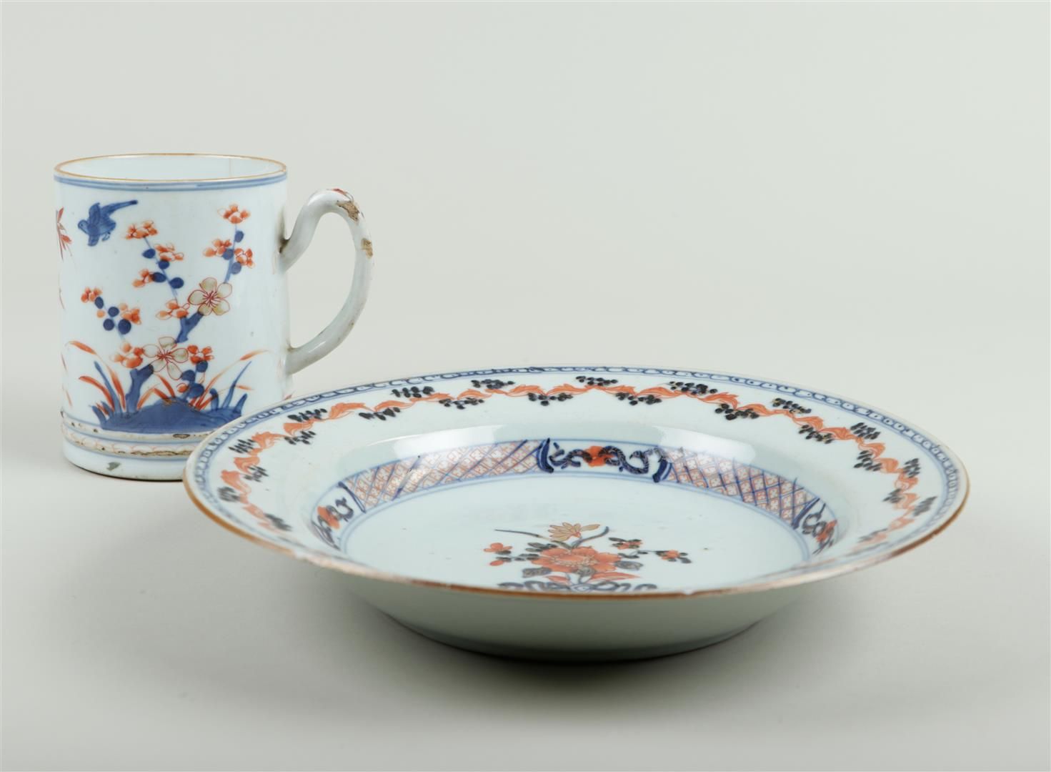 A lot consisting of a beer mug and a plate with Imari decoration. China, 18th...