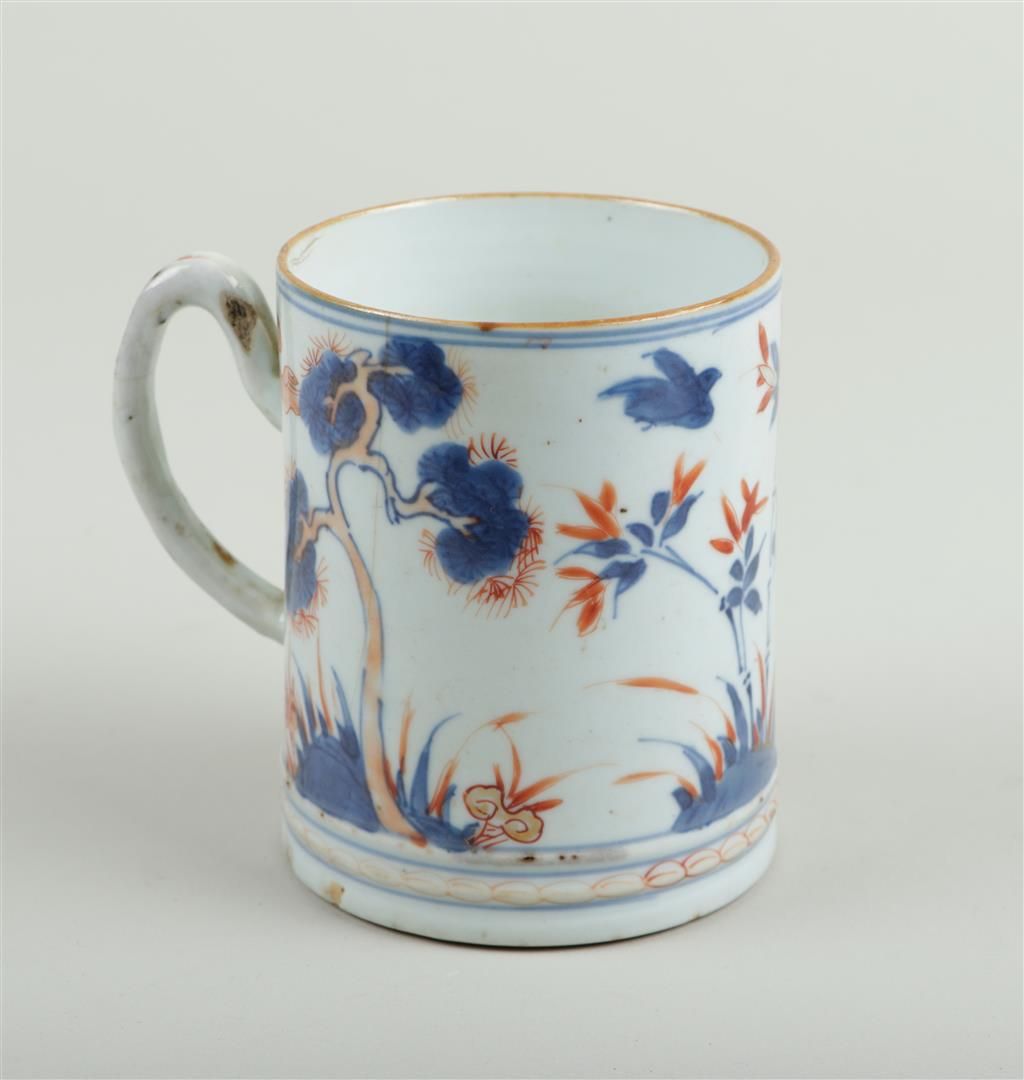 A lot consisting of a beer mug and a plate with Imari decoration. China, 18th century. Edge damage and hairlines.