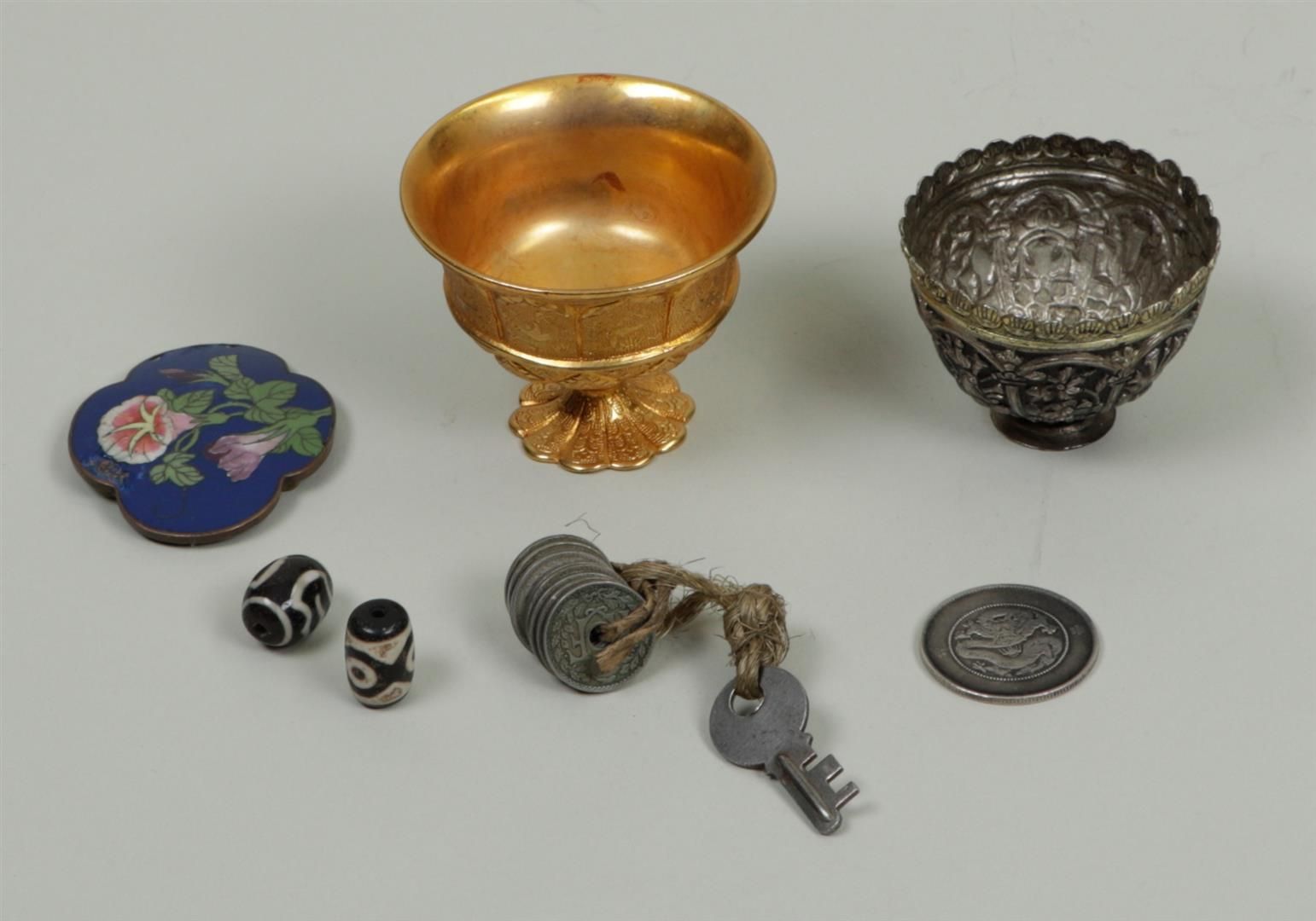 A lot of various objects including silver, beads and coins. China, 19/20th century.