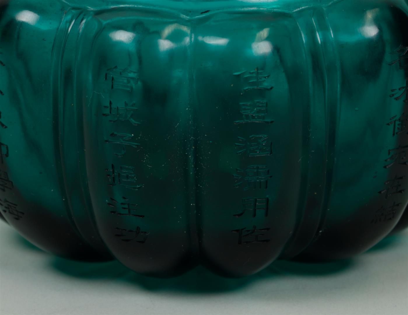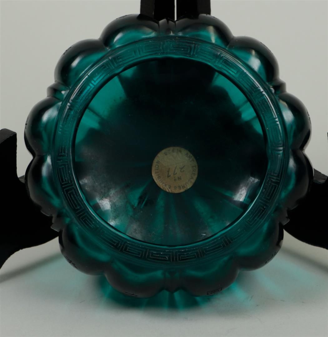 A Chinese Peking glass incense burner decorated with various Chinese characters, art treasures exhibition 1928.