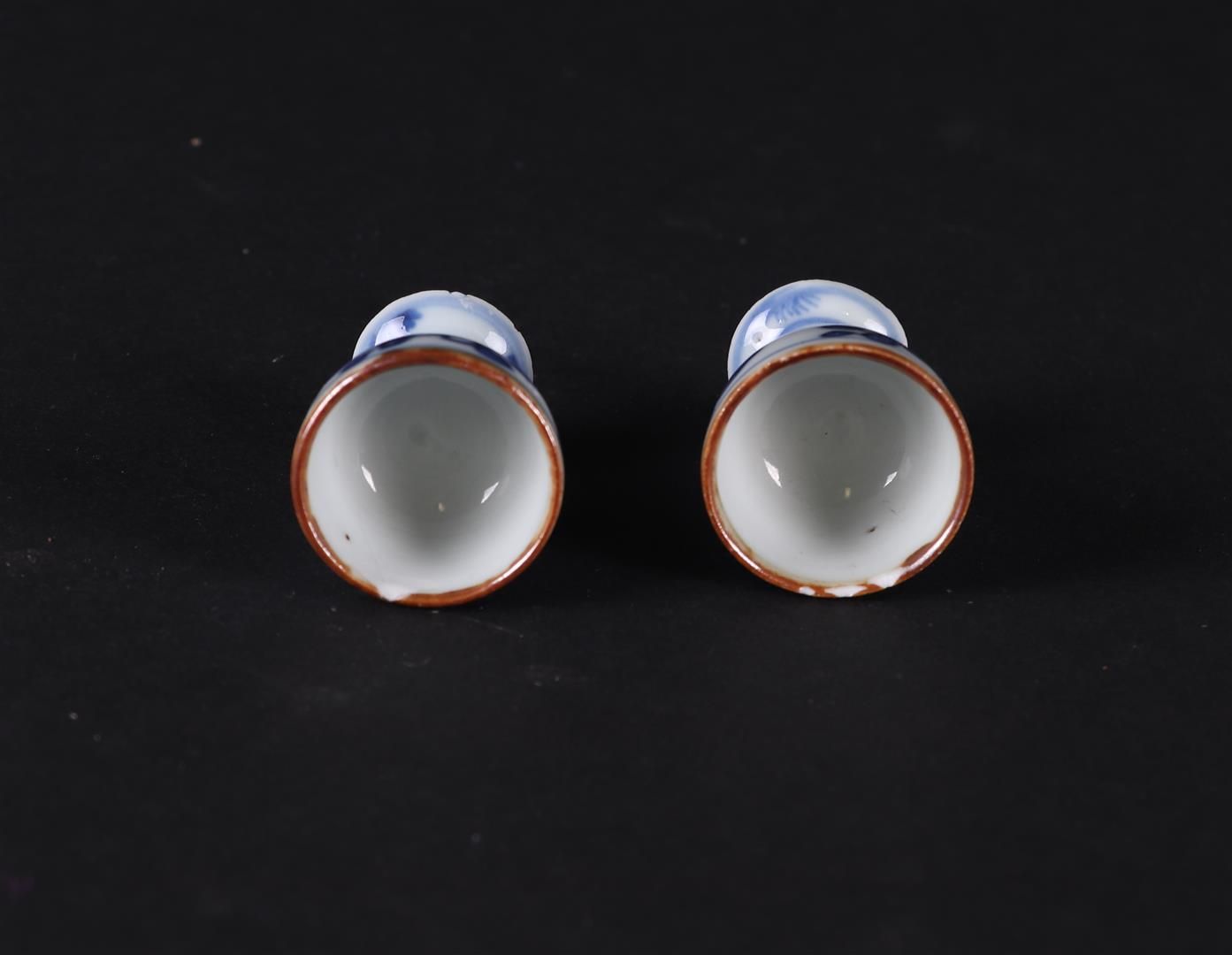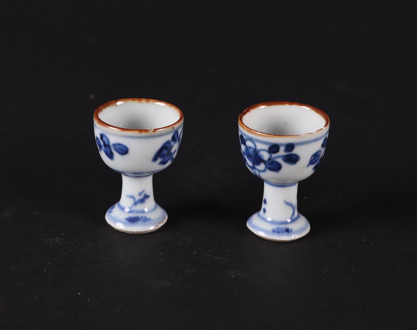 Two porcelain stem cups with floral decor. China, Yongzheng.H. 4,5 cm.
