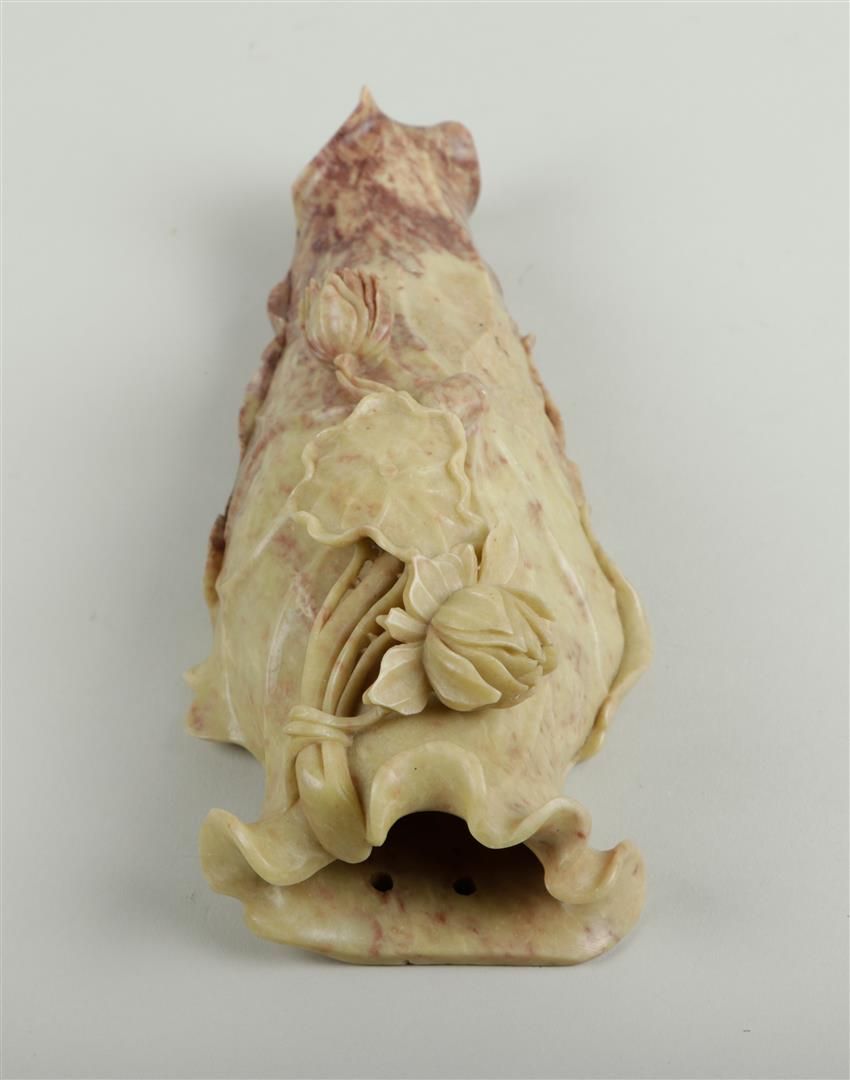 A soapstone wall vase in the shape of a lotus. China, 19th century.