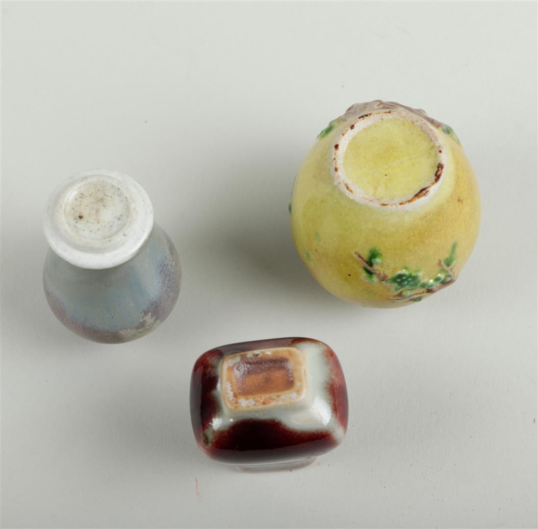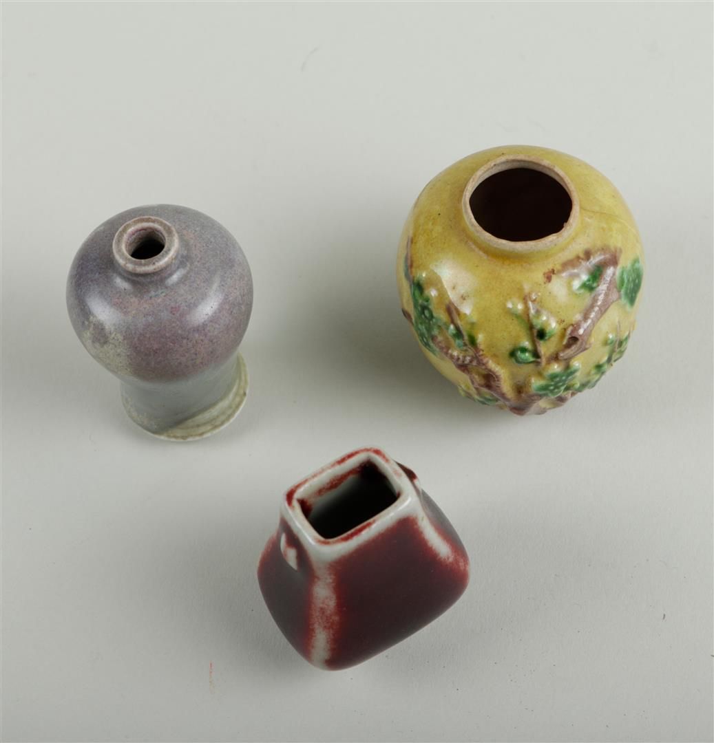 A lot consisting of a Wang bing rong pot, sang de boueuf Hu miniature and a meiping miniature