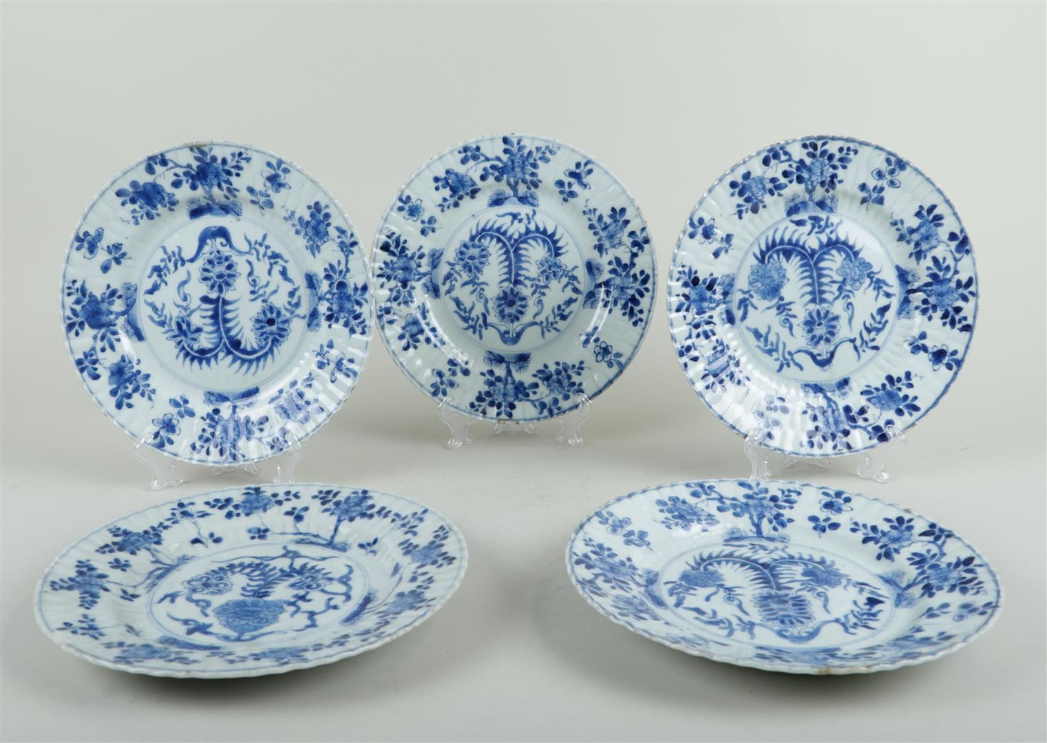 Five porcelain plates floral decoration. China, Kangxi ca 1700.Diam. 21 cm.