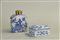 A lot consisting of a blue and white tea caddy with copper stopper, and a...
