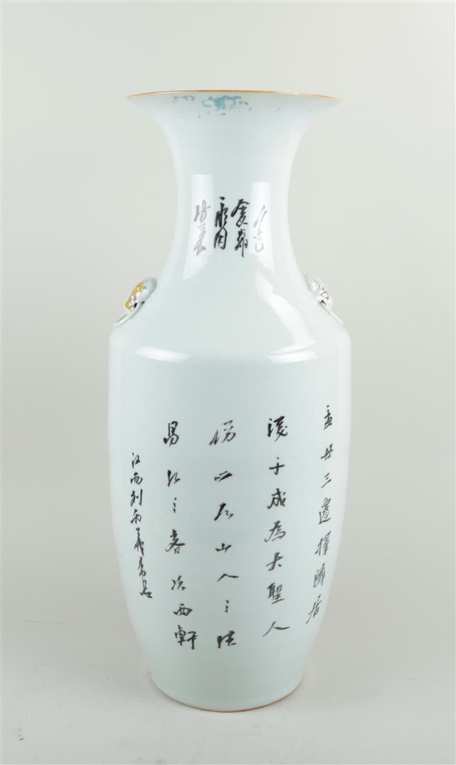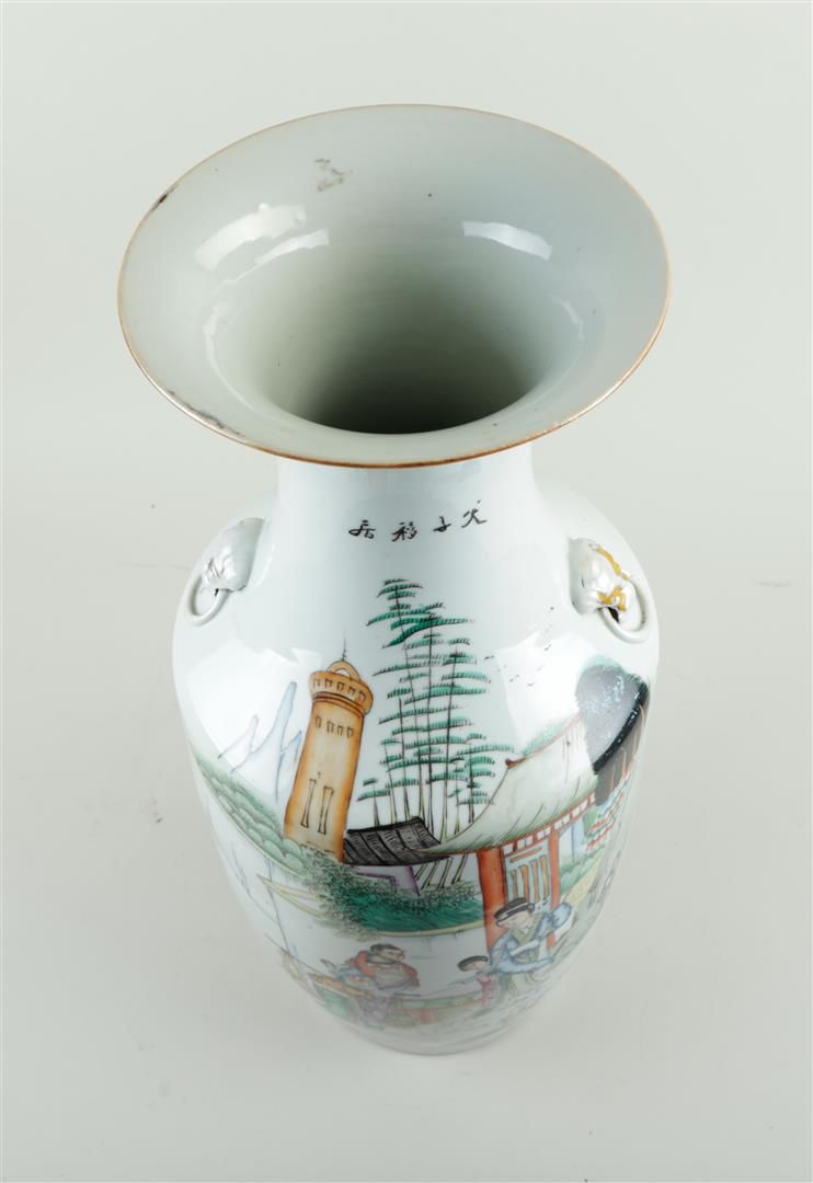 A porcelain Qiang Yang cai vase decorated with various figures and characters on the back. China, 19th century.