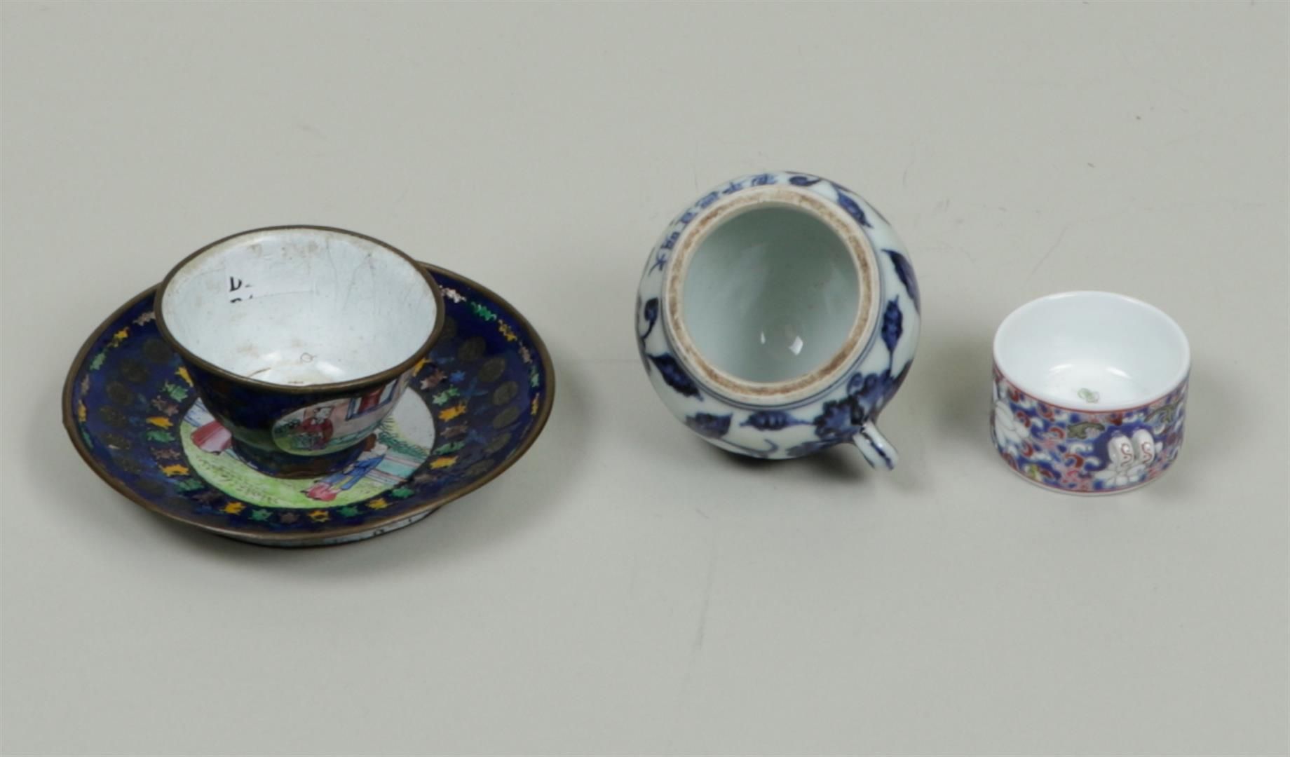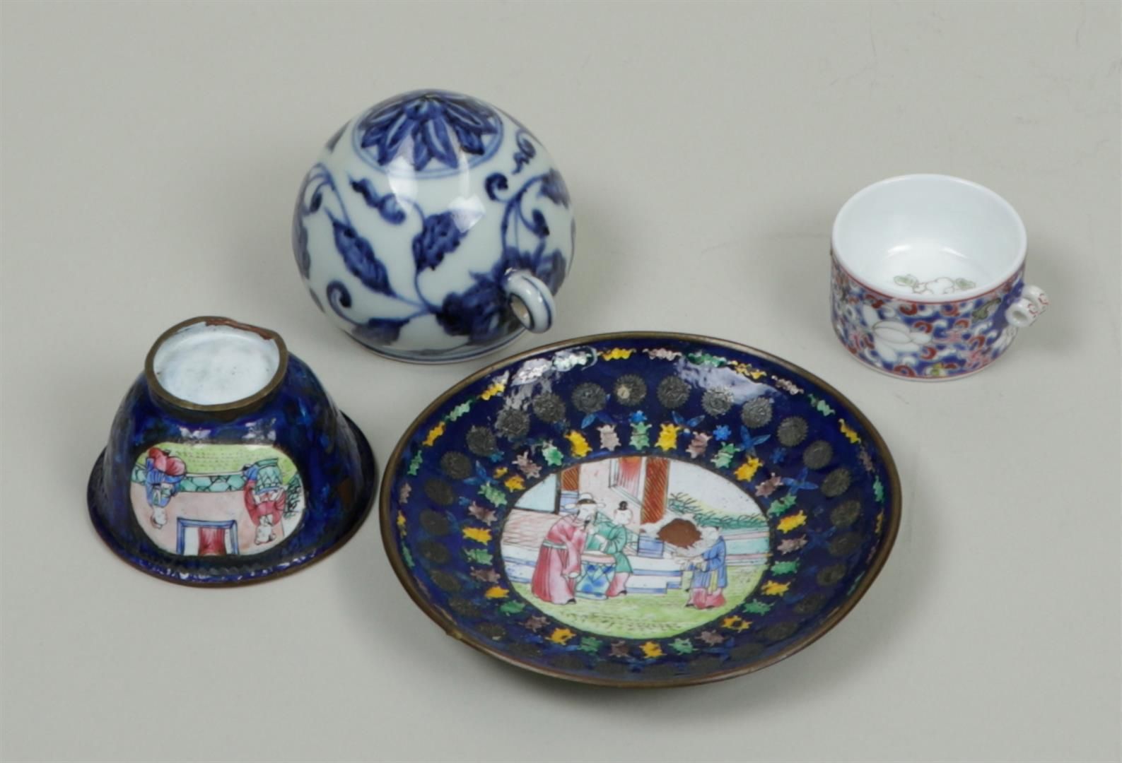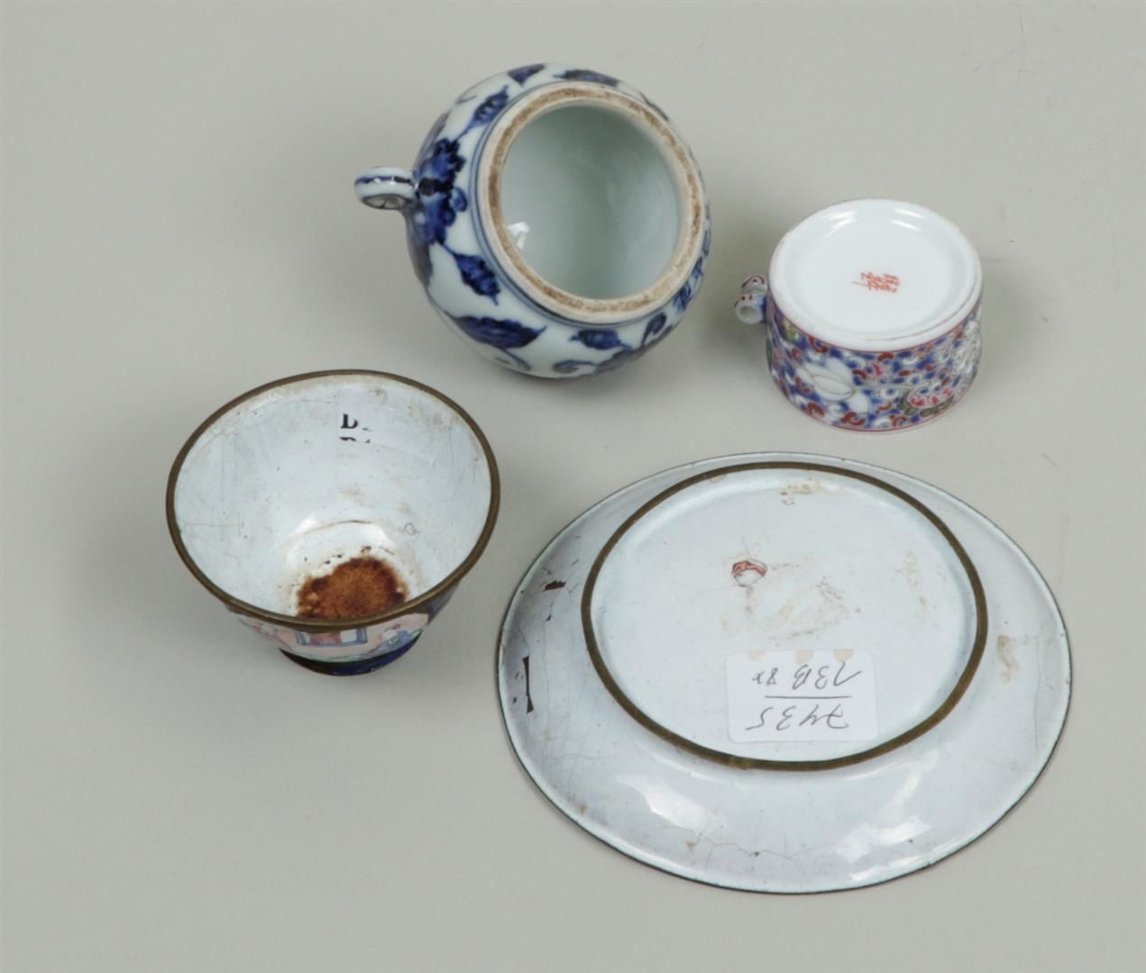 Lotto 2225 | A lot of various items including an enamel cup and saucers and two porcelain...