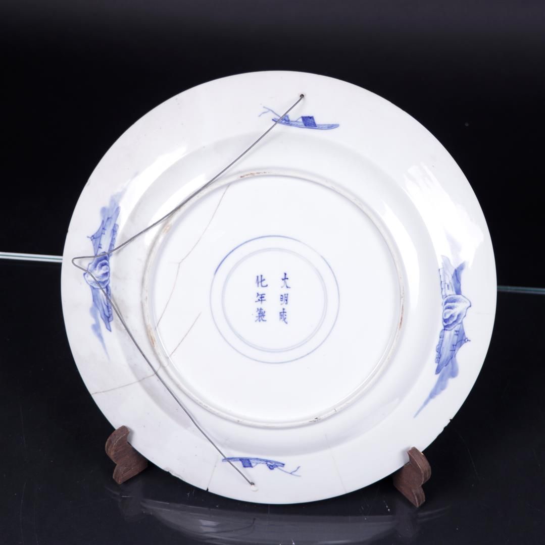 A porcelain dish decorated with figures, marked Chenghua. China, Kangxi.Diam....