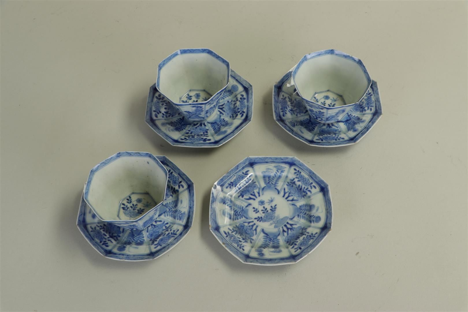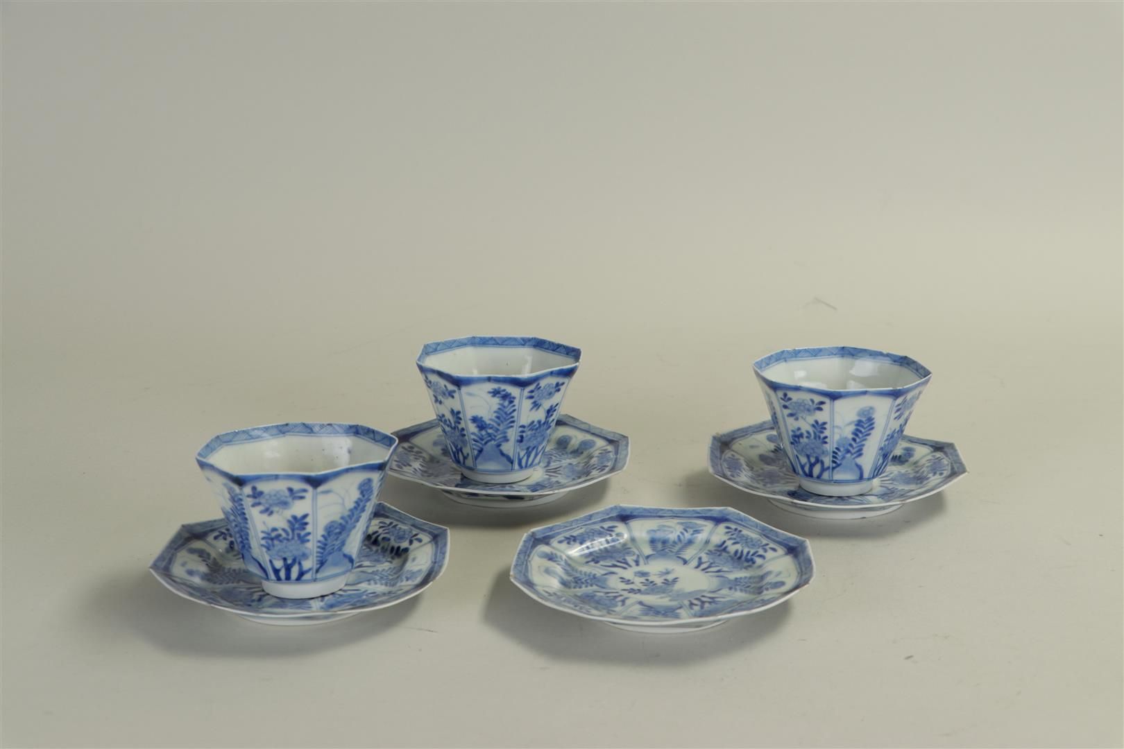 A lot consisting of 3 cups and four matching saucers, marked on the bottom, Japan, 17th/18th century.