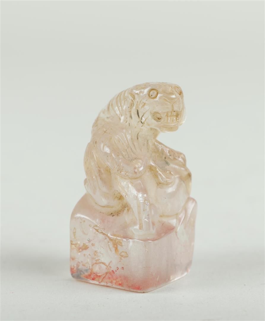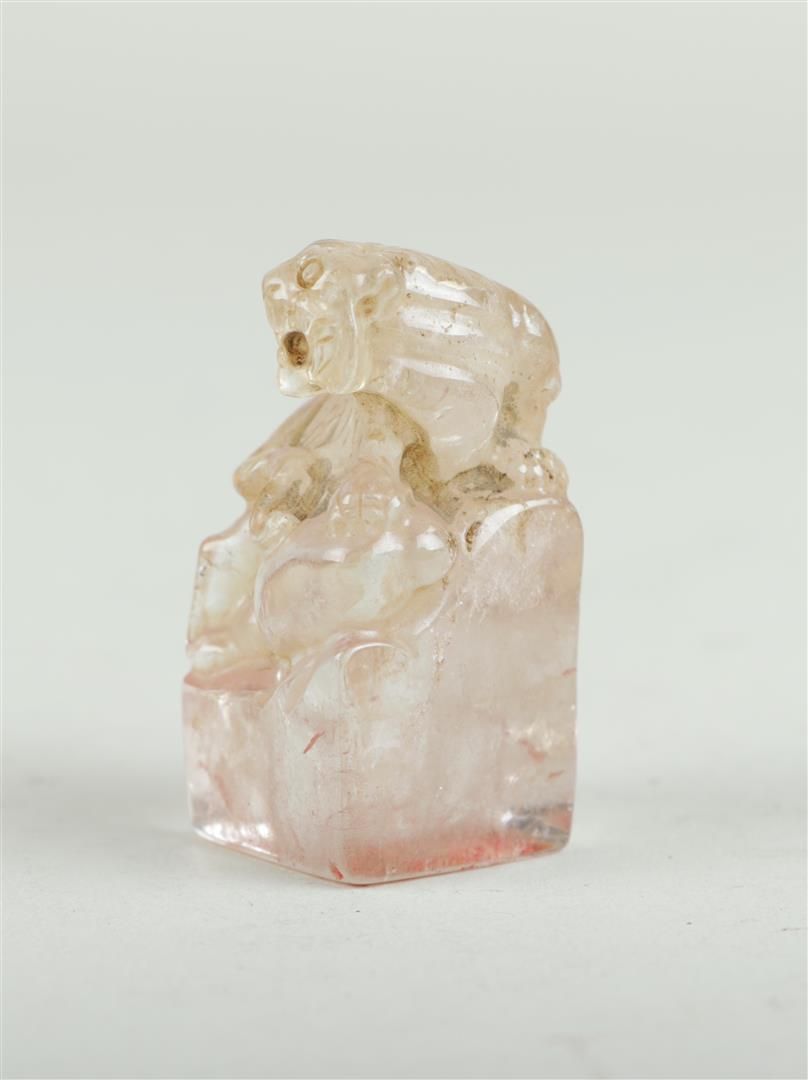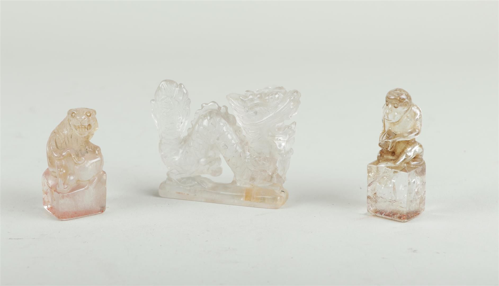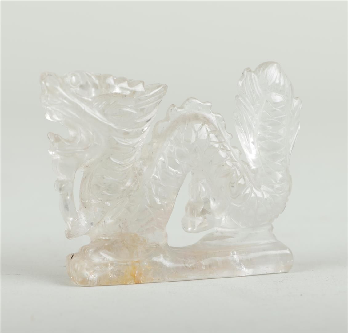 Lotto 2243 | A lot of mountain crystal objects consisting of a dragon and two stamps with...