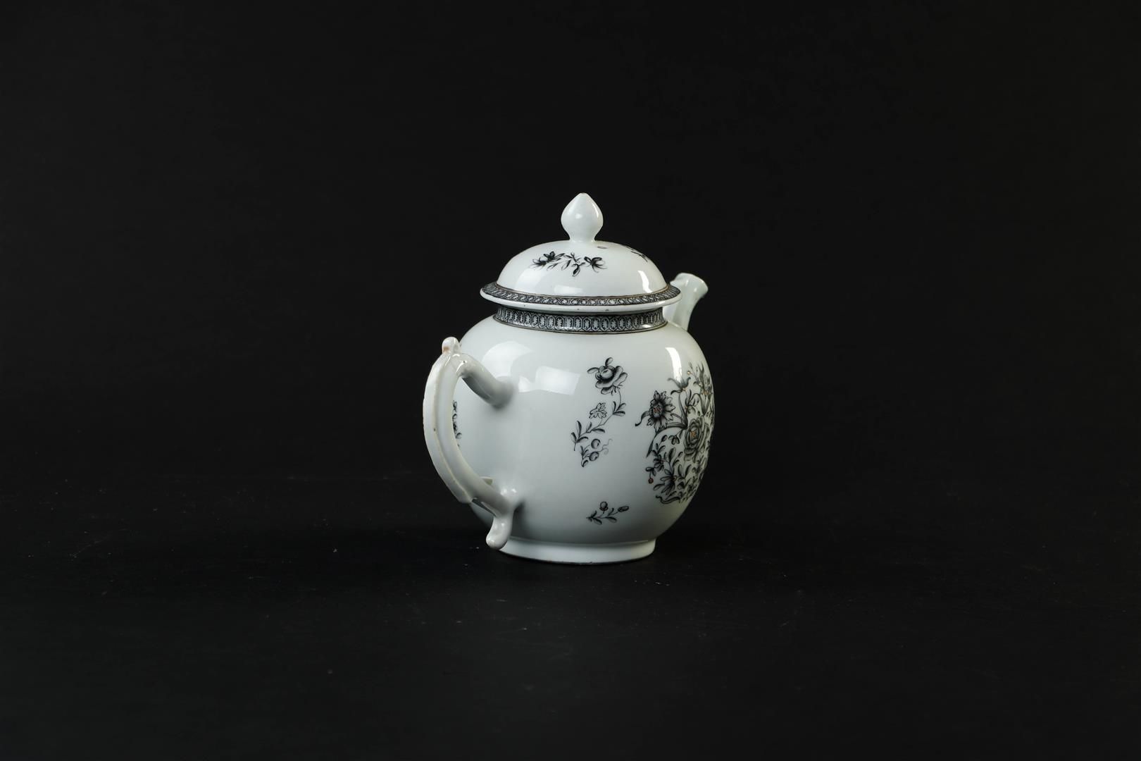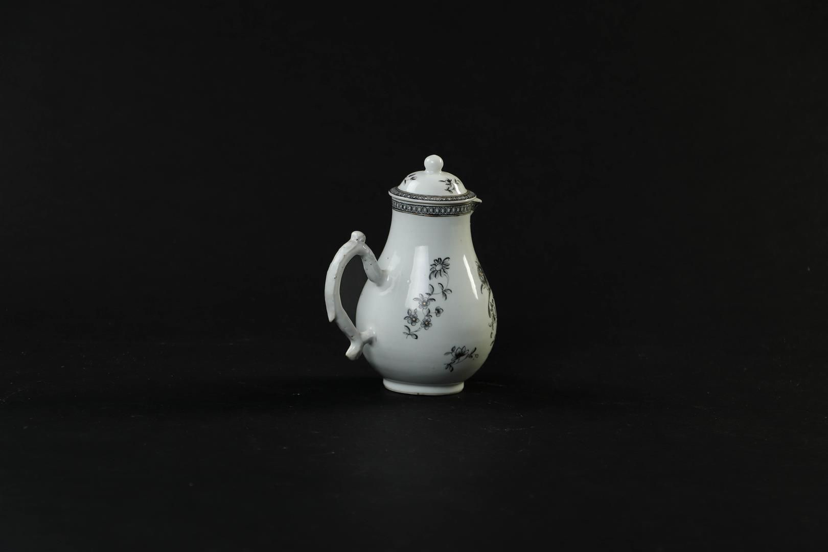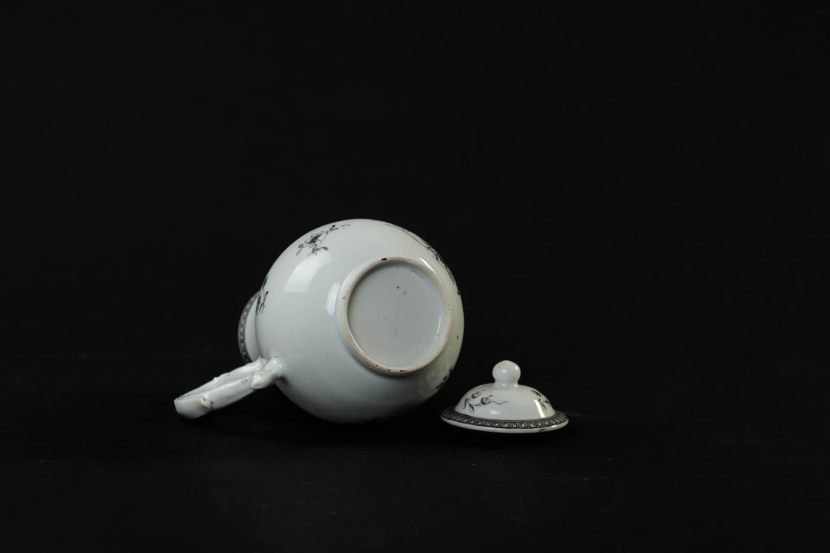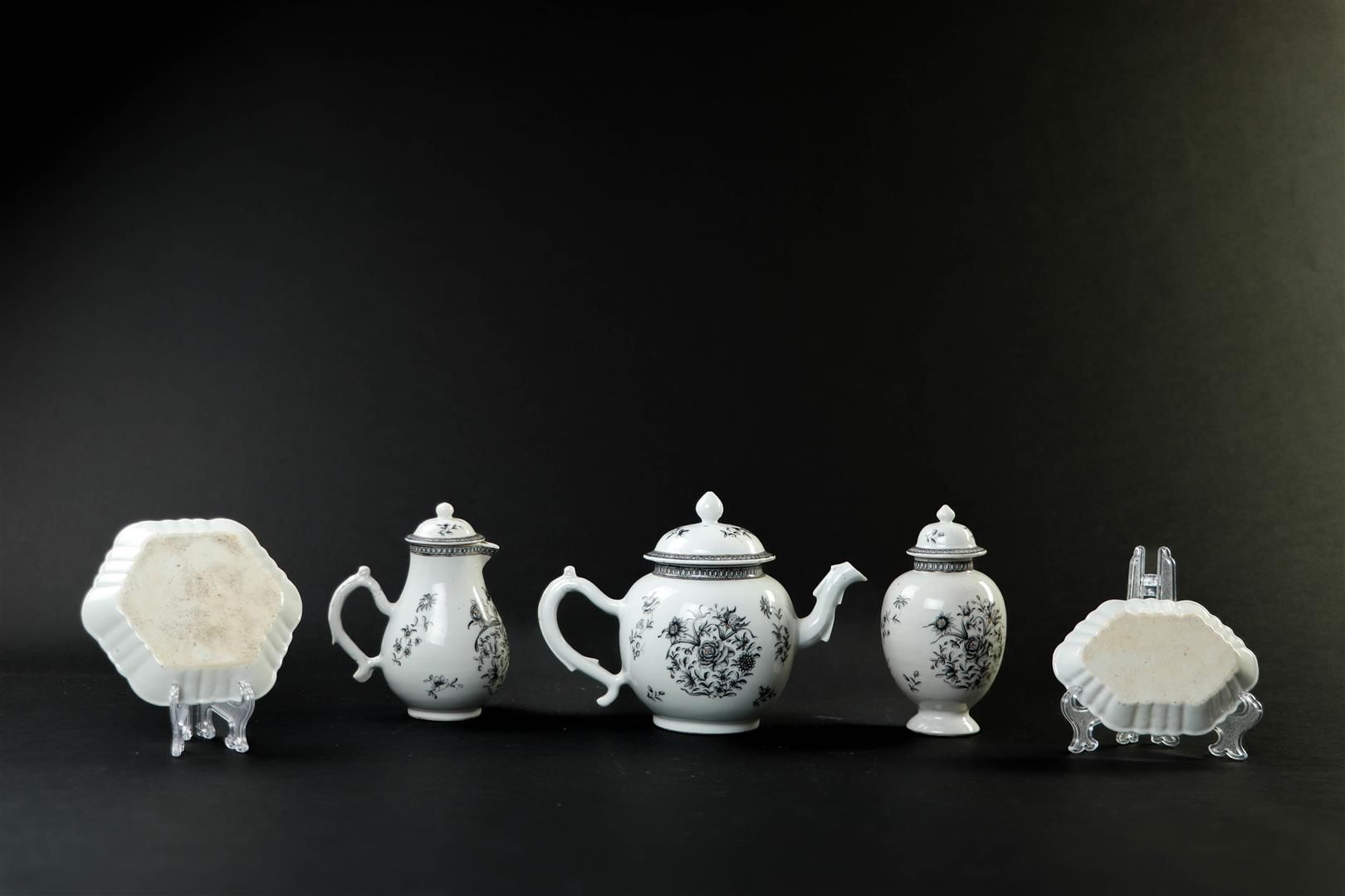 An Encre de Chine tableware set consisting of a teapot, milk jug, tea caddy, patty pan and spoon tray / patty pan. China, 18th century.