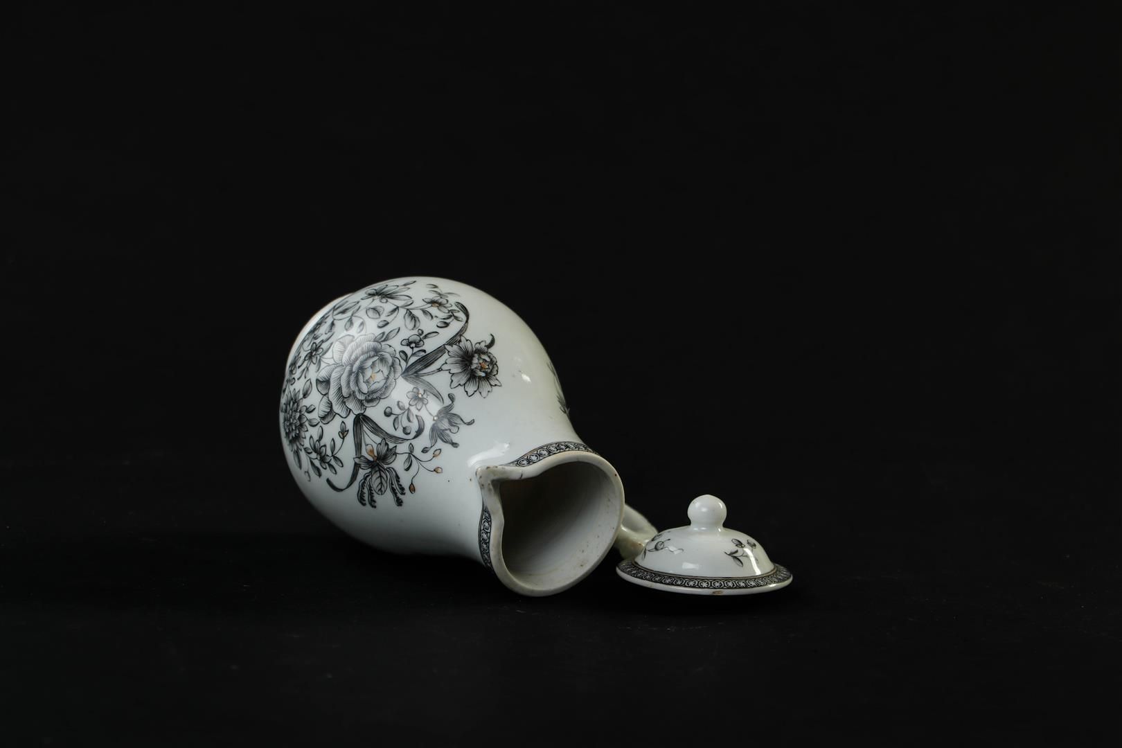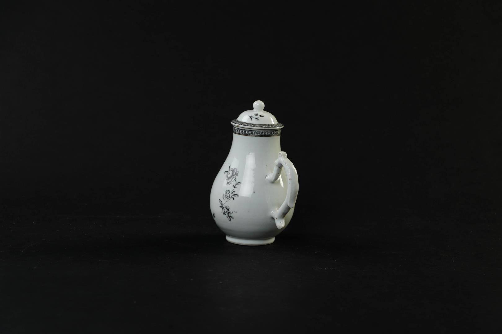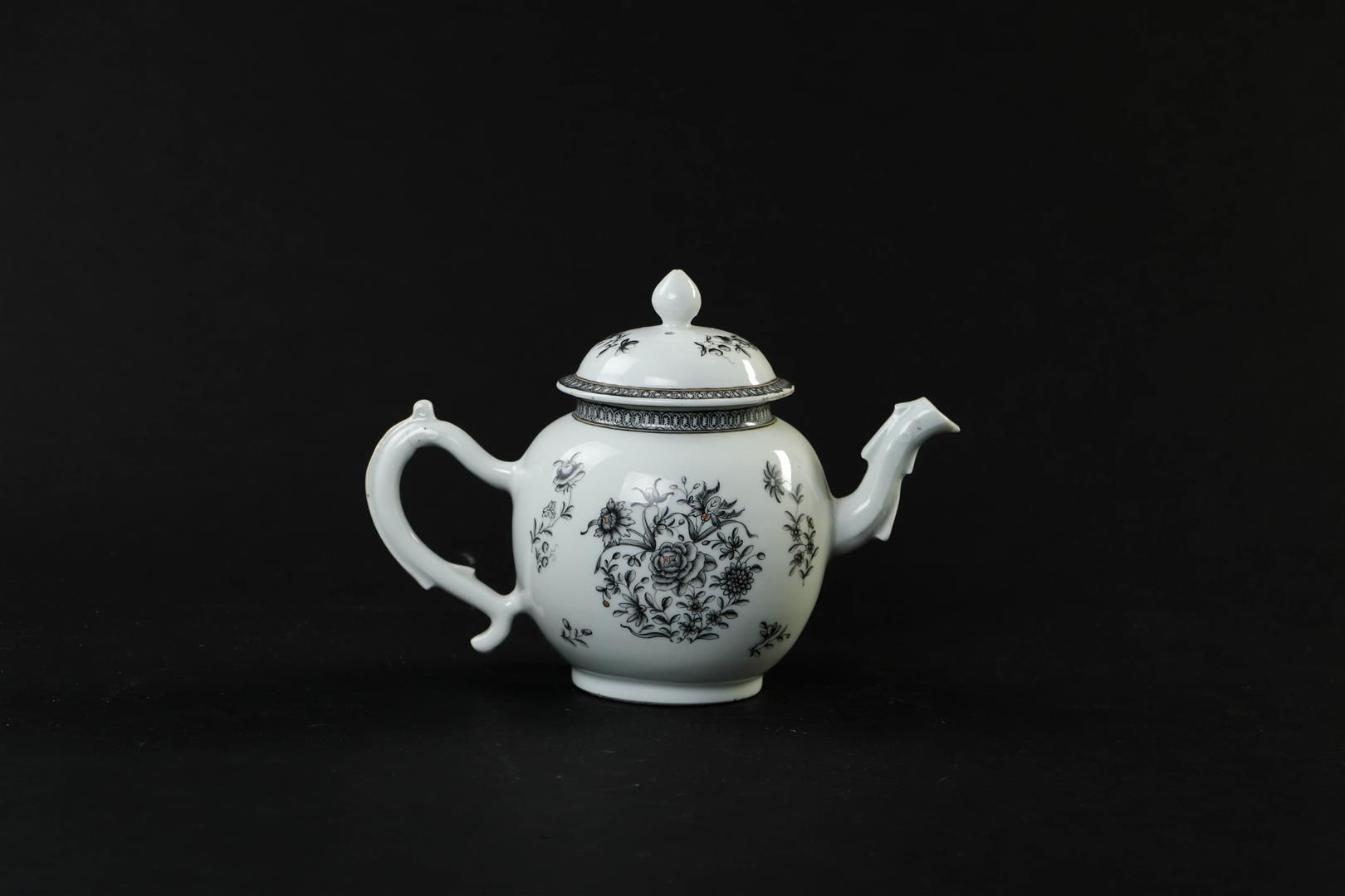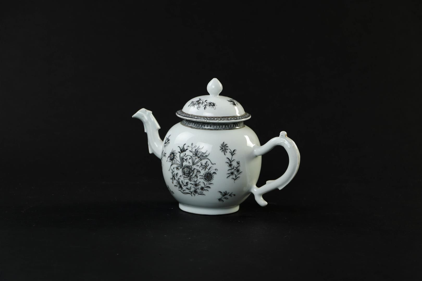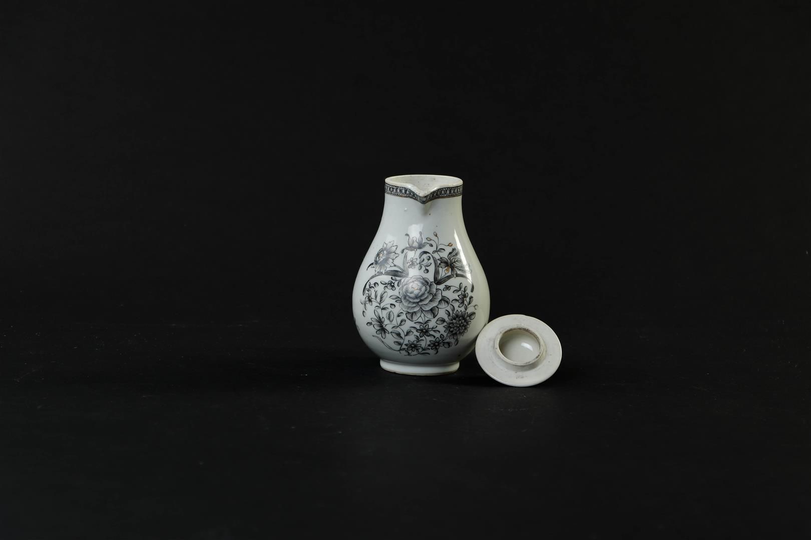 An Encre de Chine tableware set consisting of a teapot, milk jug, tea caddy, patty pan and spoon tray / patty pan. China, 18th century.