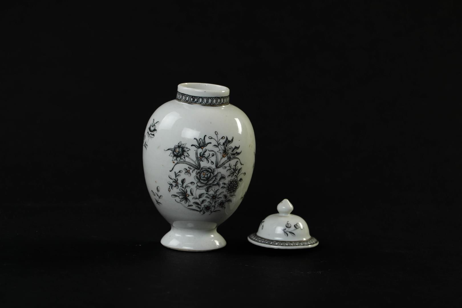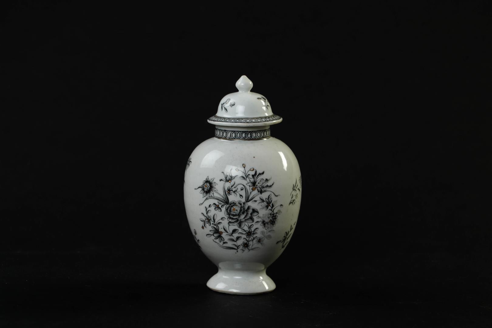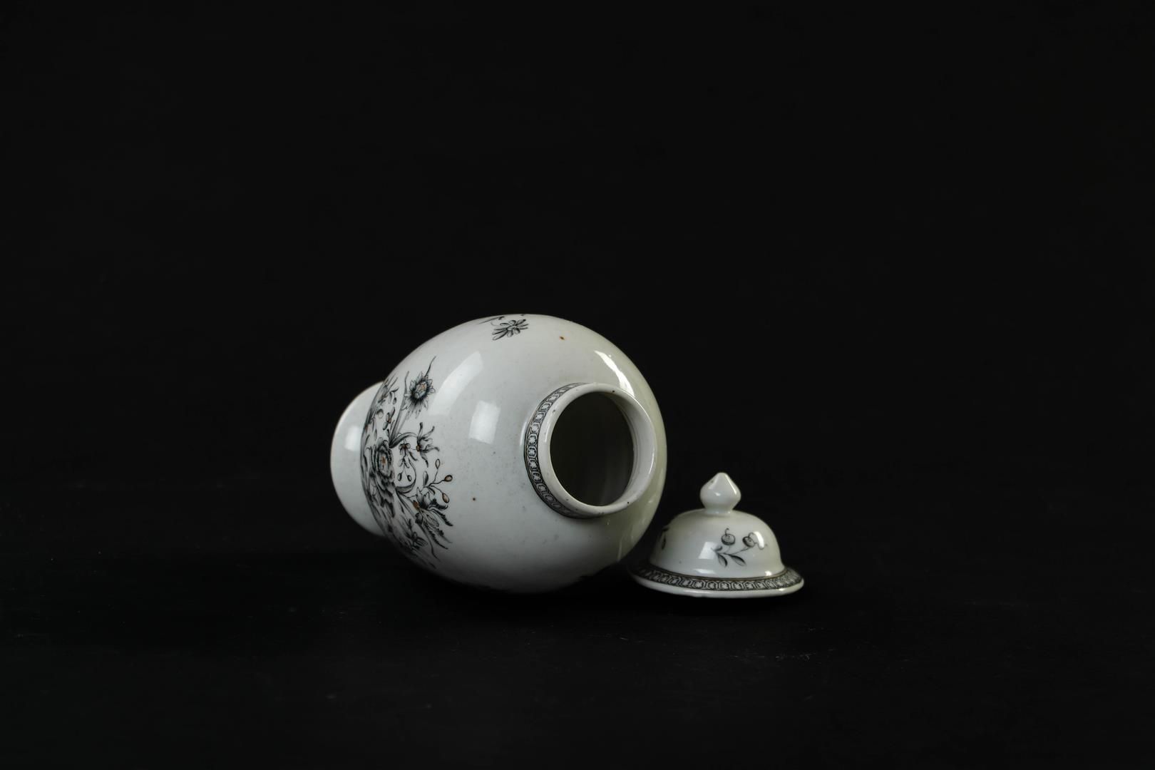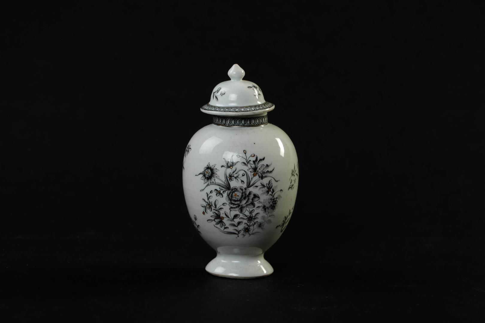 An Encre de Chine tableware set consisting of a teapot, milk jug, tea caddy, patty pan and spoon tray / patty pan. China, 18th century.