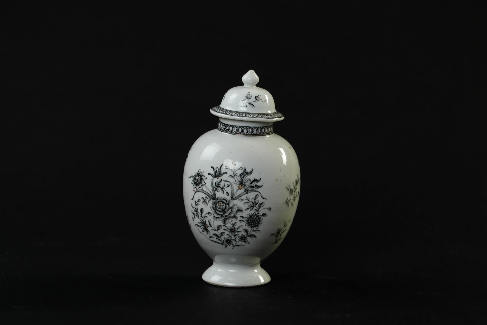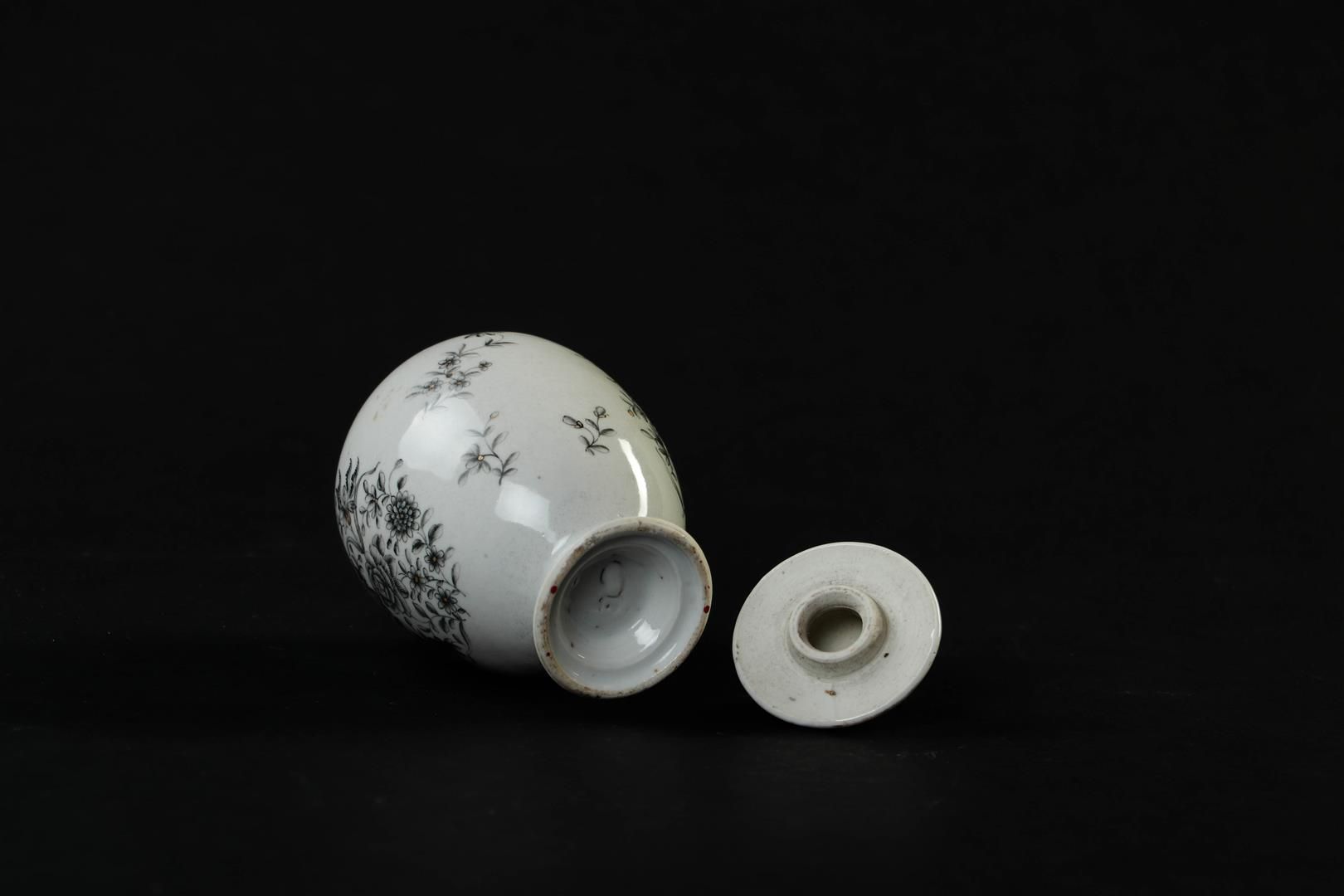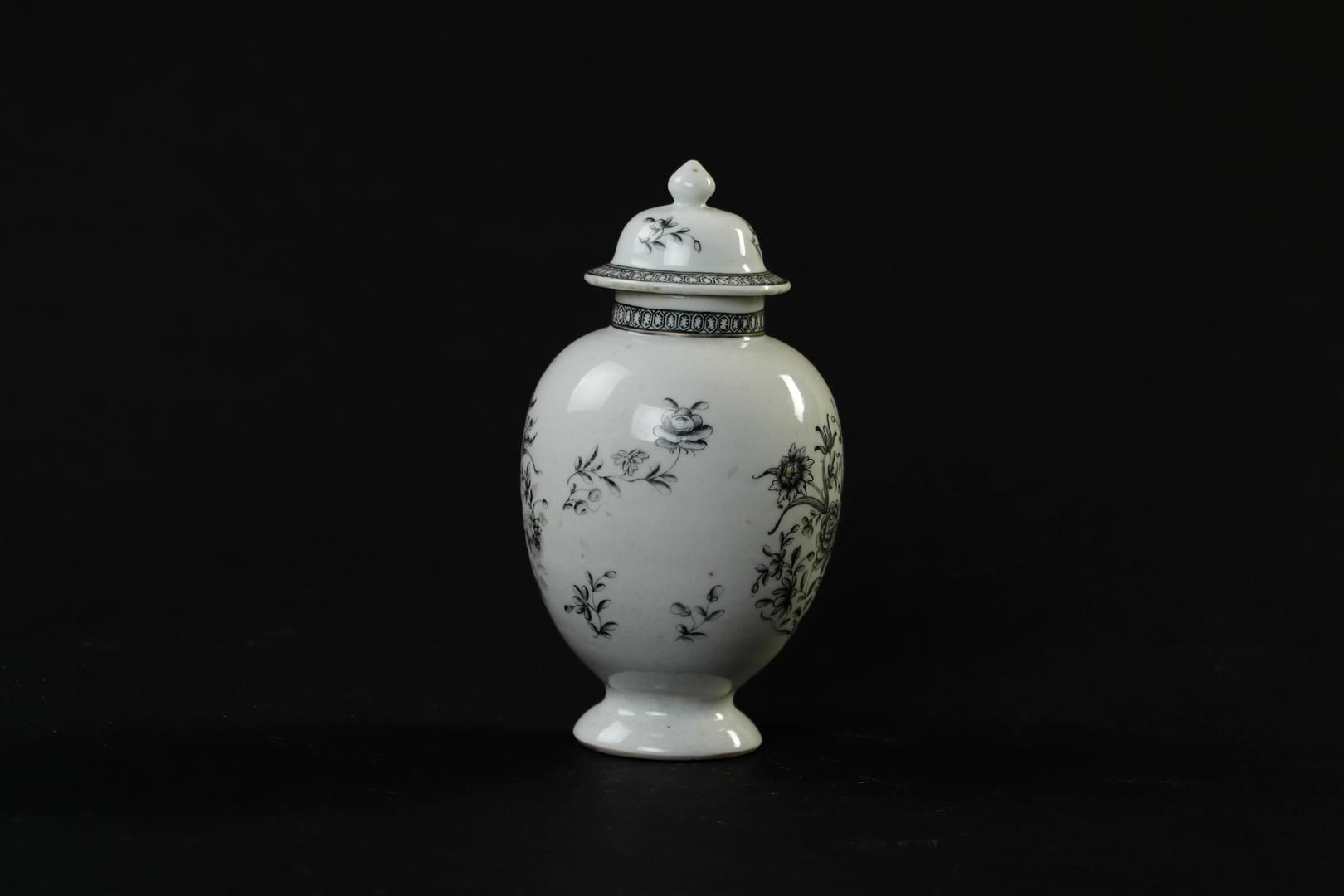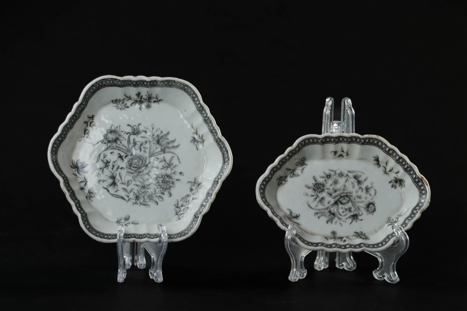 An Encre de Chine tableware set consisting of a teapot, milk jug, tea caddy, patty pan and spoon tray / patty pan. China, 18th century.