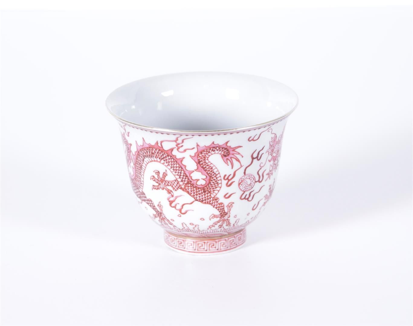 A porcelain cup with dragon decor, marked Guanxu. China, 19/20th century.H. 7...