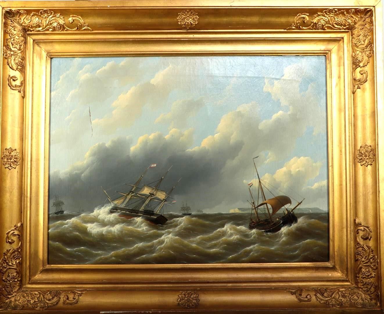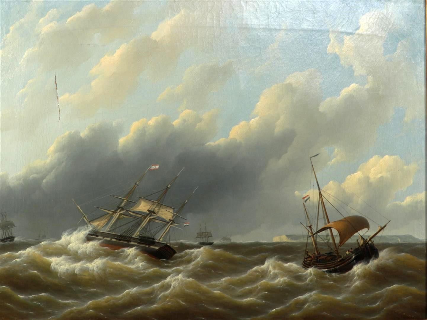 P.C. Schotel (Dordrecht 1805 - 1856 Dresden), Ships on a rough sea off the coast of Dover, signed (lower right), oil on canvas,