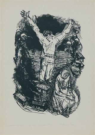 Neicov Xristo Ai poeti bulgari fucilati, 1976 litografia su carta, cm. 70x50, es. 4/120 intitolata, firmata e datata in basso, timbro a secco Cooperativa Opera Artistica Modena in basso a destra, certificato di garanzia della Cooperativa per la Diffusione dell'Opera Artistica di Modena al retro senza cornice