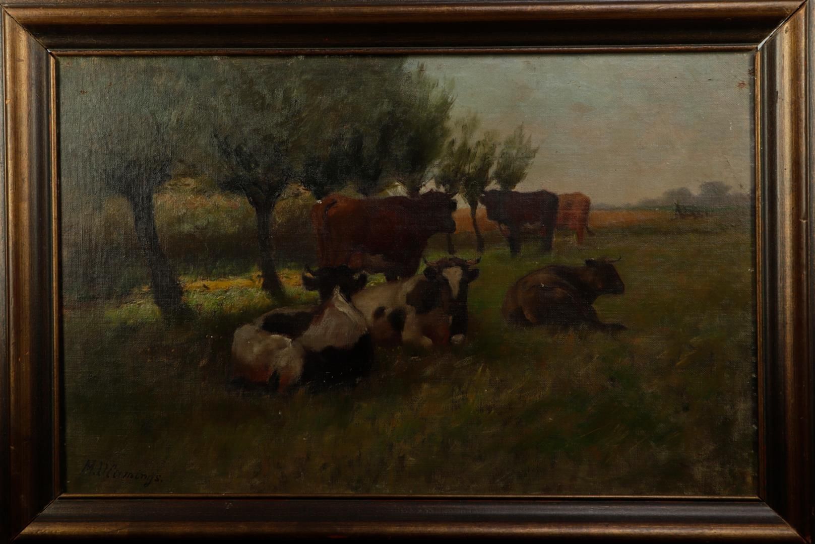 Marinus Vlamings (Dinteloord 1846 - 1903 Middelburg), Sunny meadow with cows, signed (bottom right), oil on board.