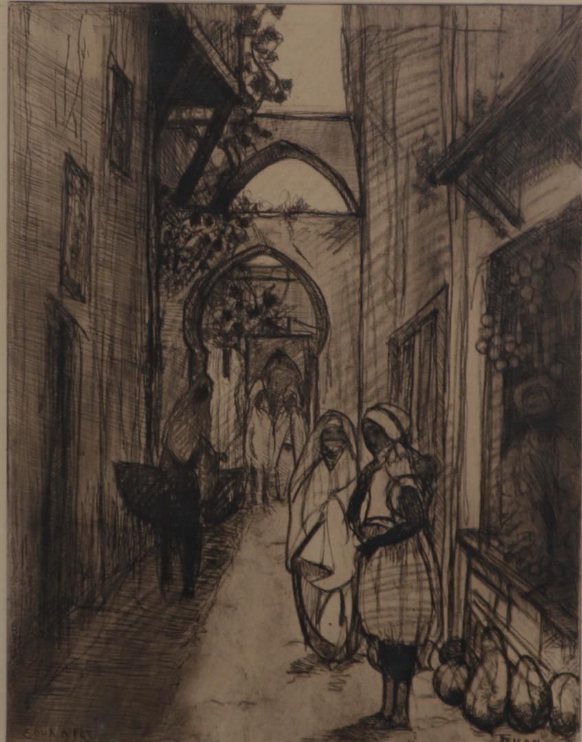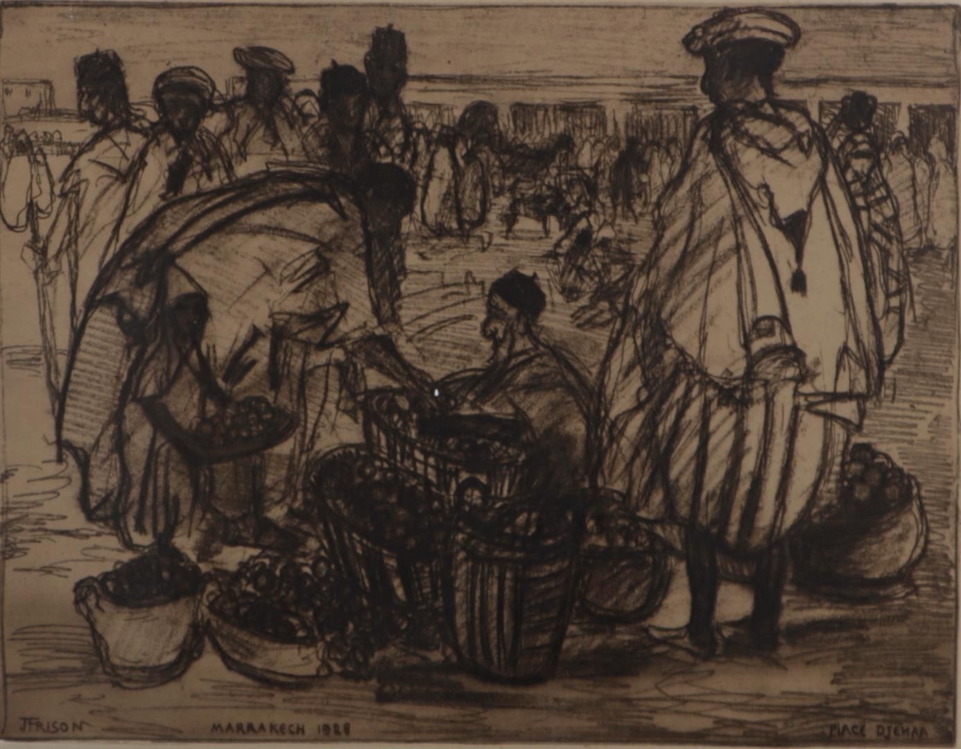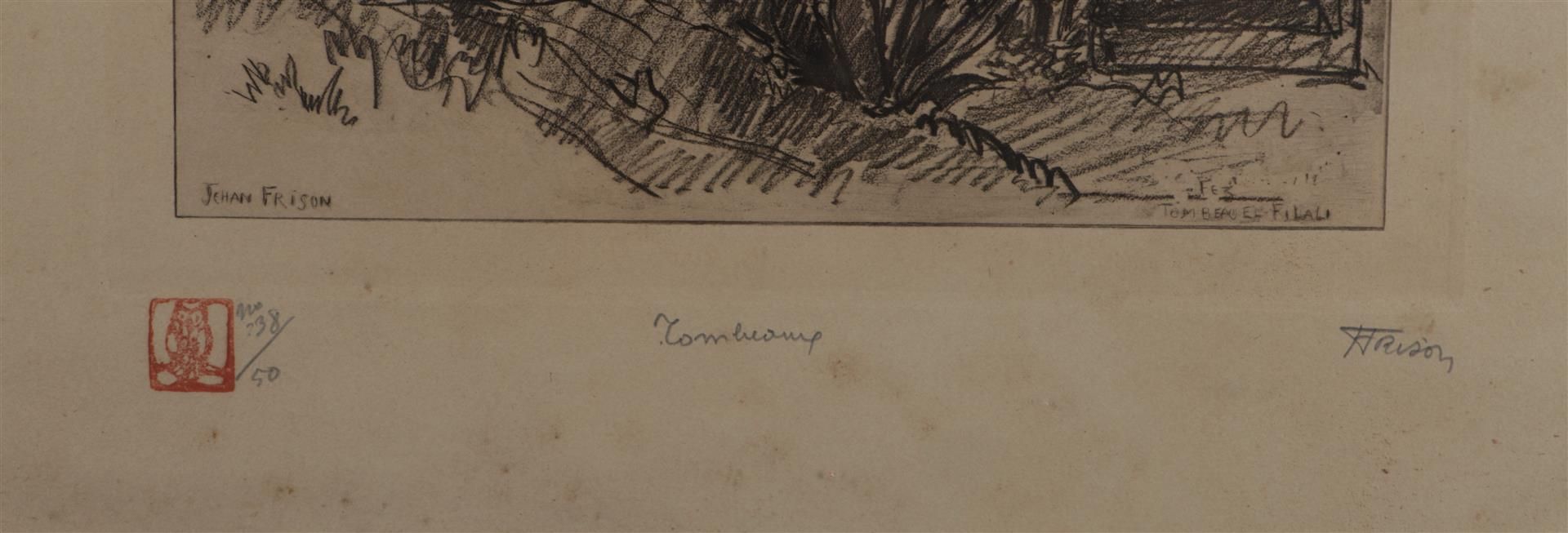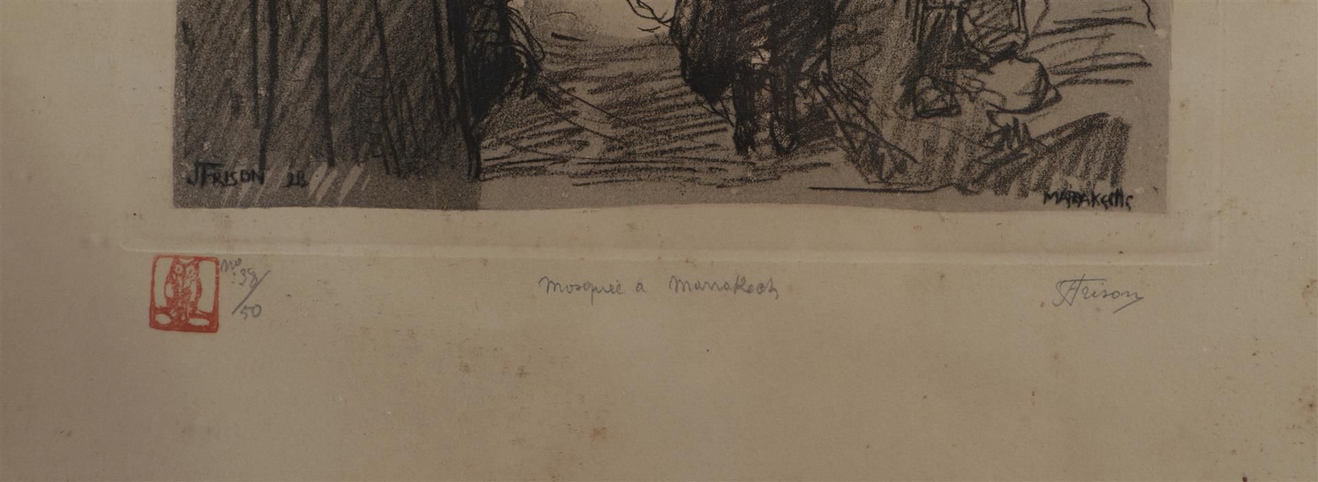 Jehan Frison (Brussels, 1882 - 1961 LIngbeek), A large lot with graphic works with scenes from the Middle East, all signed and annotated with title. Total 15 pieces.