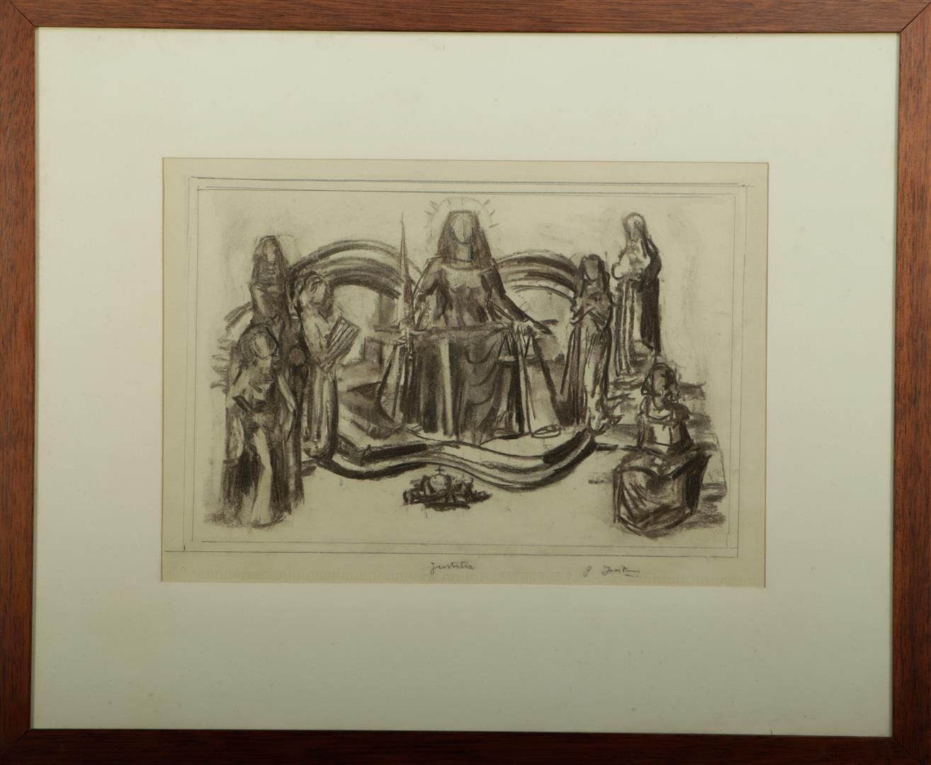 Paul Joostens (Antwerp 1889 - 1960), 'Justitia', charcoal on paper, signed, and annotated with title (in pencil), 24 x 35 cm.