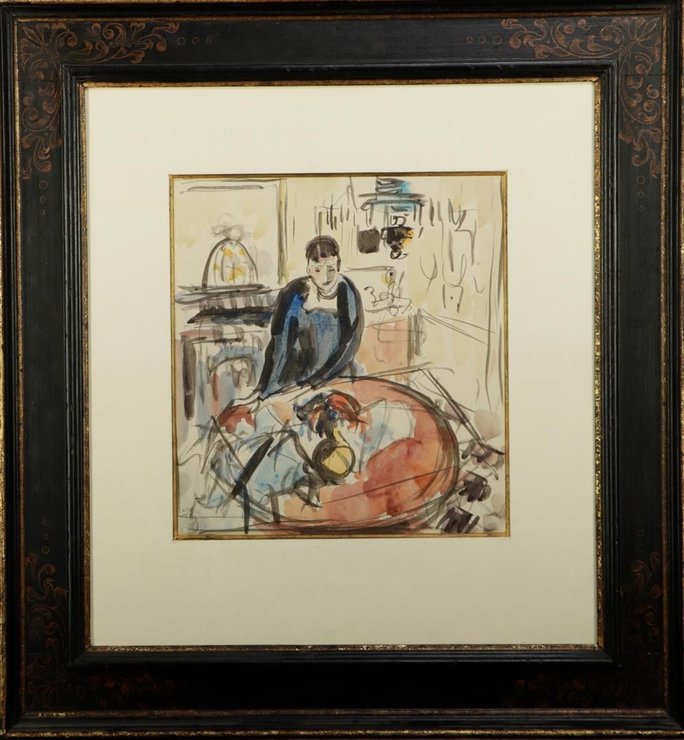Rik Wouters (Mechelen 1882 - 1916 Amsterdam), Nel à table, signed (with studio stamp of Gallery Georges Giroux, Brussels), and numbered '135' (lower left), watercolor on paper,