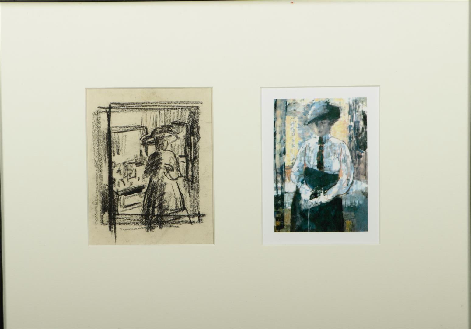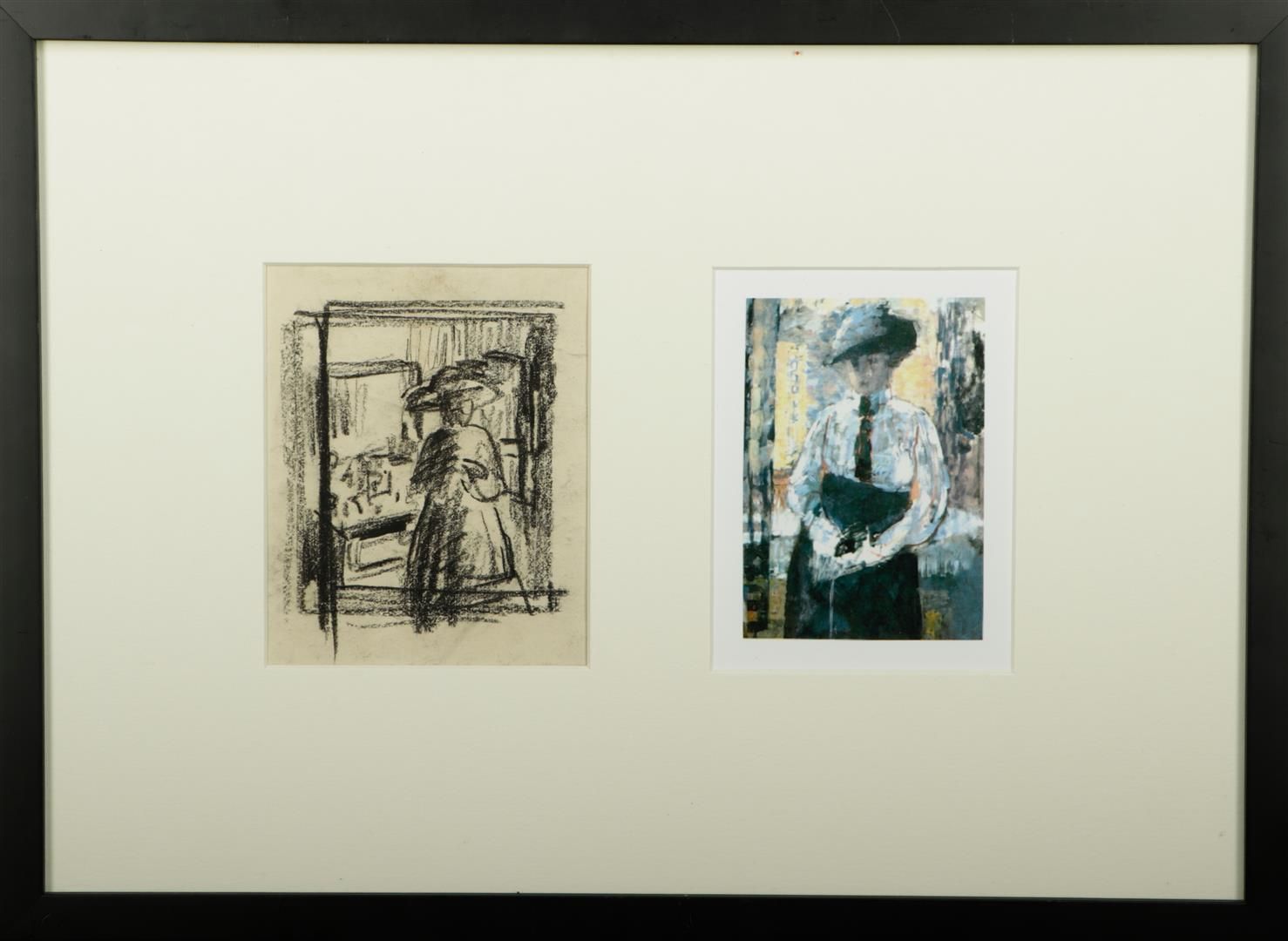 Rik Wouters (Mechelen 1882 - 1916 Amsterdam), Woman in front of a shop window,charcoal on paper (recto), Court in the snow, etching, signed, and annotated with title (verso),