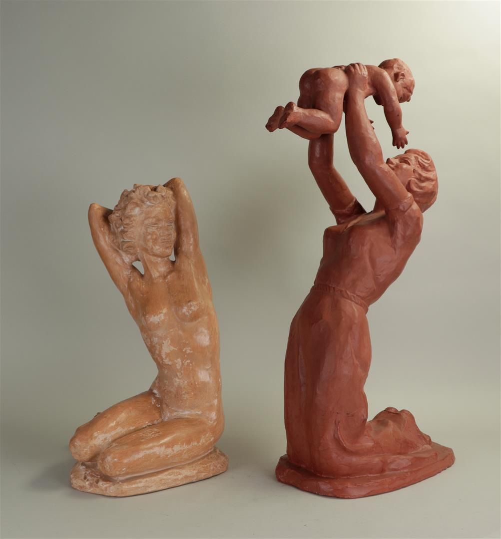 Paul Sersté (1910 - 2000), Femme et enfant; Nu assis, both shaped pieces, resp.: 56 & 48 cm. Both signed (in the foot),