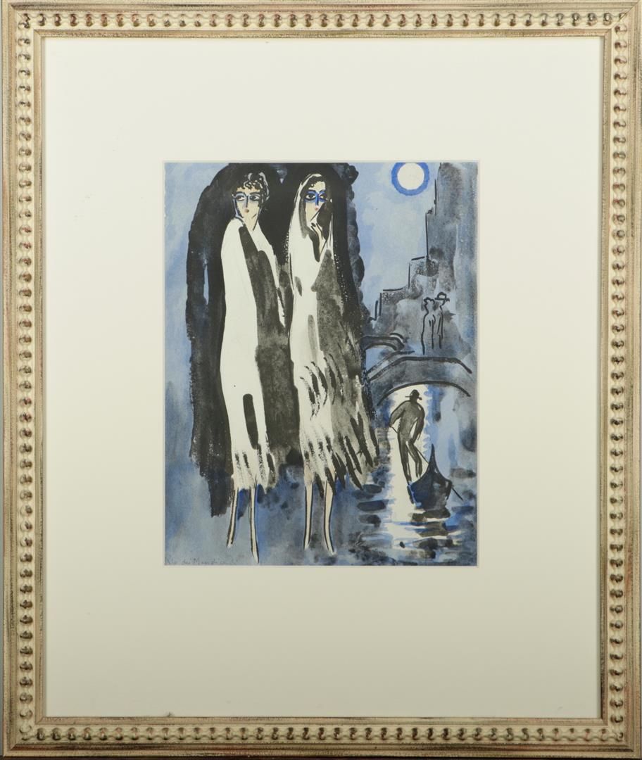 Kees van Dongen (Rotterdam 1877 - 1968 Monte Carlo, Monaco), Venice, After the ball, Pochoir, 1925, edition: 316 copies Claude Saude, Paris at A la Cité des Livres, Paris, 32.8 x 25.8 cm. literature:Catalog Raisonné: Juffermans JB 3 condition: In beautiful original condition. from: 'Venise-Seuil des Eaux' , Paul Leclère
