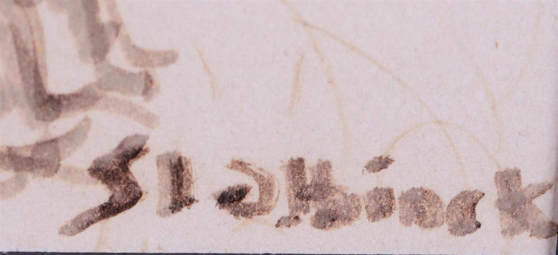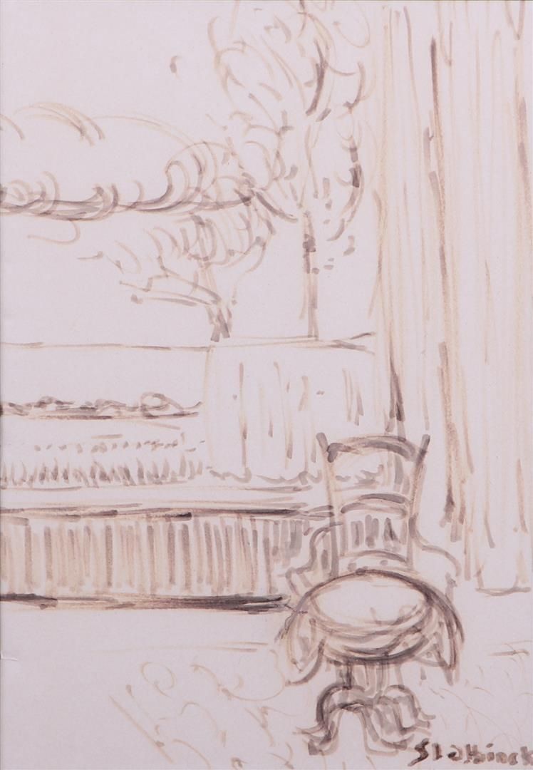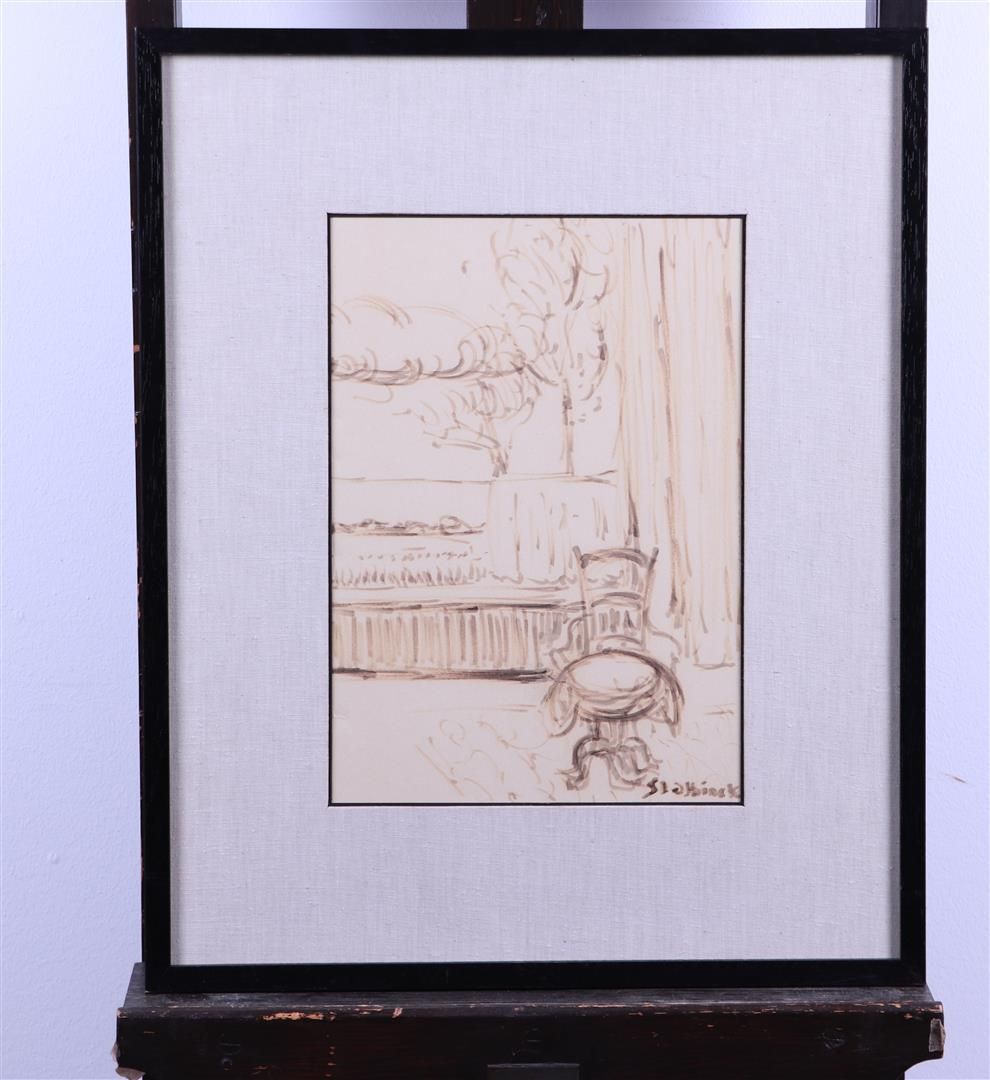 Rick Slabbink (Bruges 1914 - 1991), Interior with a view from the window. signed (bottom right), reed pen and ink on paper