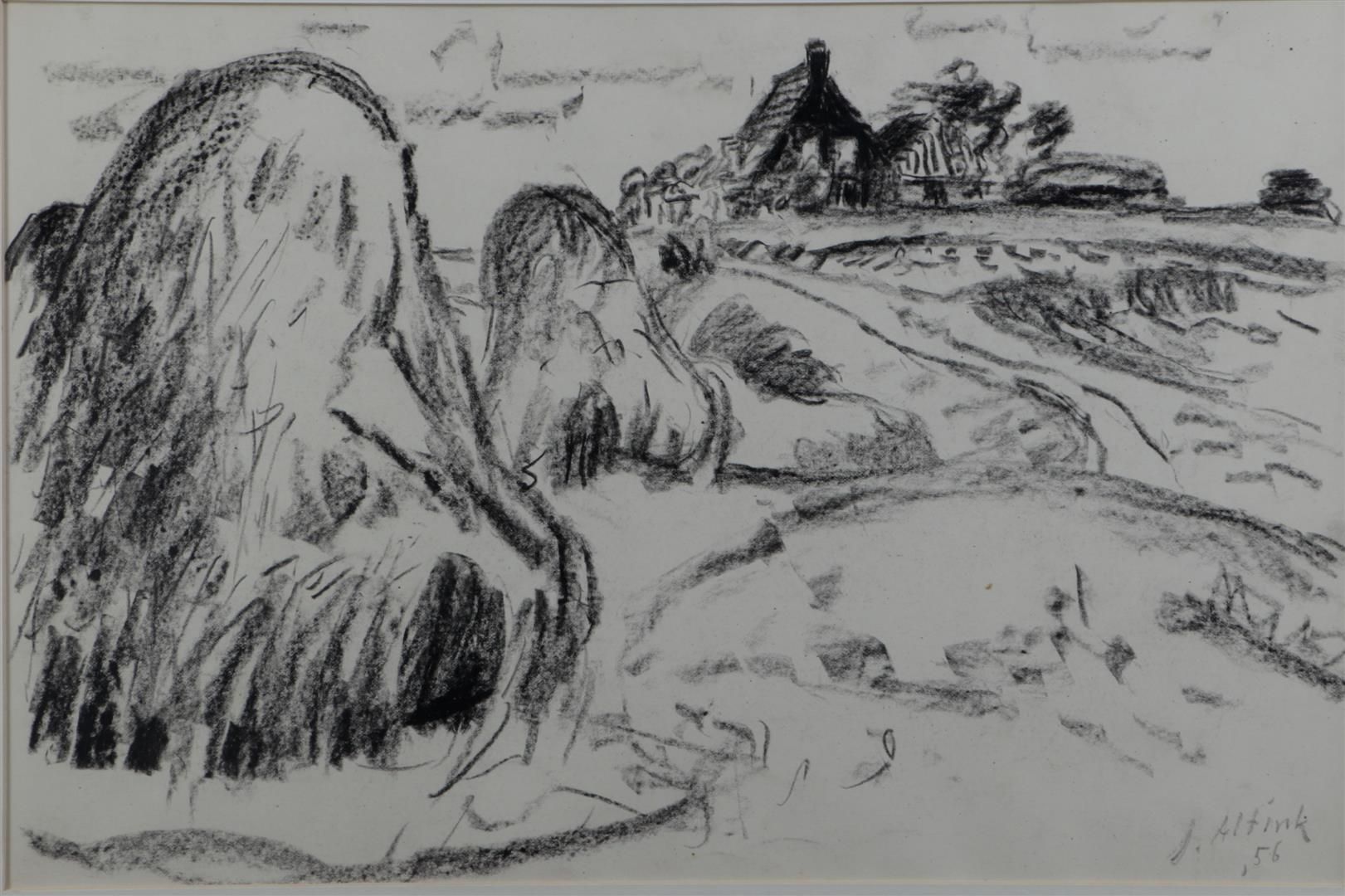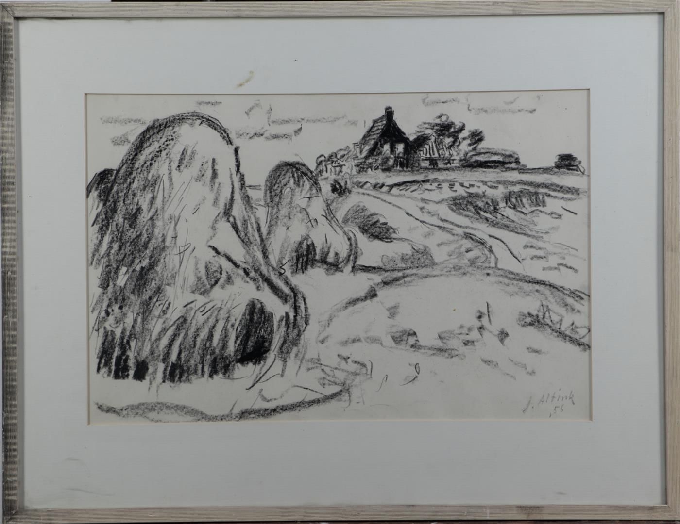 Jan Altink (Groningen 1885 - 1971), Haycocks for a farm in Groningen, black chalk on paper, signed and dated ; 56 (bottom right): Provenance: Acquired directly from the artist by J.H.M. Rolink (inv. no. AL 214-T), subsequently by inheritance.