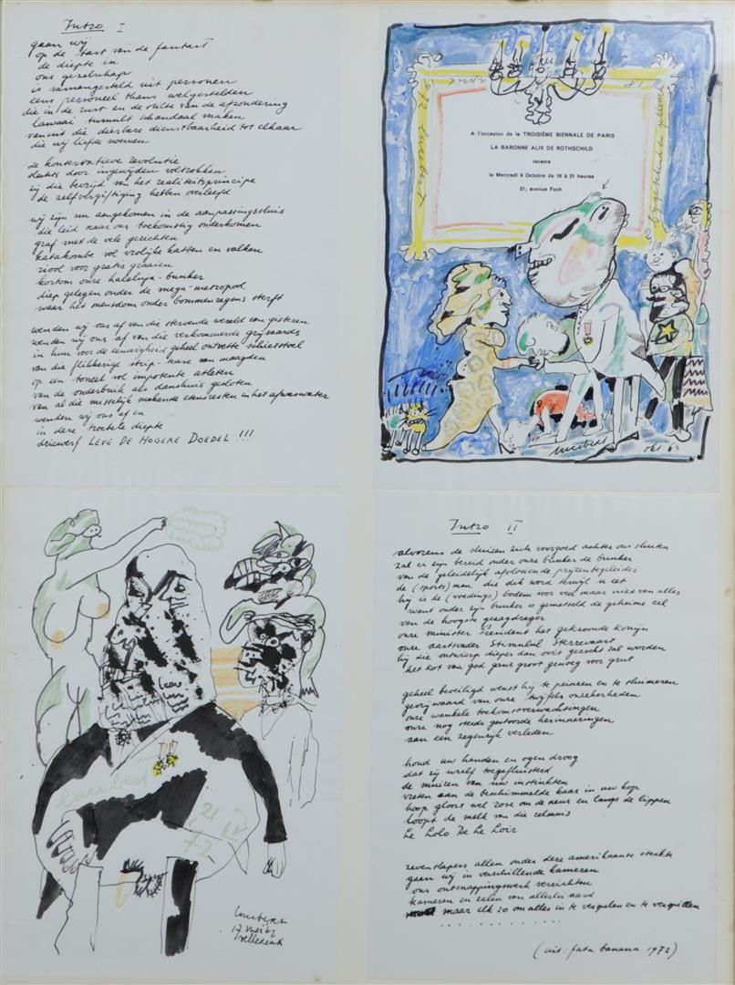 Lubertus Jacobus Swaanswijk 'LUcebert' (Amsterdam 1924 – 1994 Alkmaar), A lot containing two poems and illustrations by Lucebert, including illustrations, both dated '63. Frame: 60 x 45 cm.