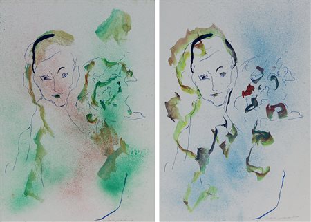 Treccani Ernesto Figure Fiore lotto composto da 2 tecniche miste su...