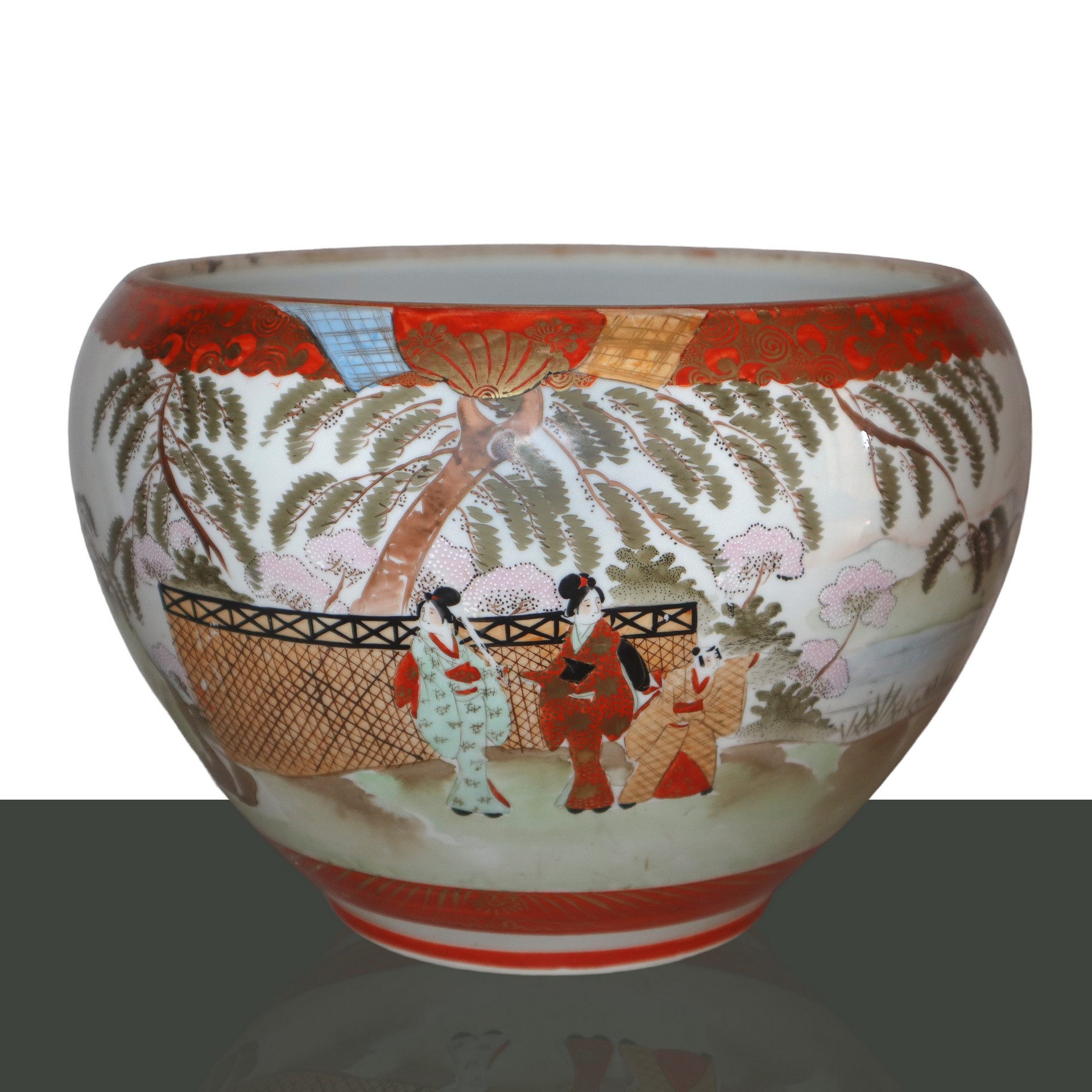 Vaso in porcellana giapponese con Geishe H cm 21 bocca cm 25