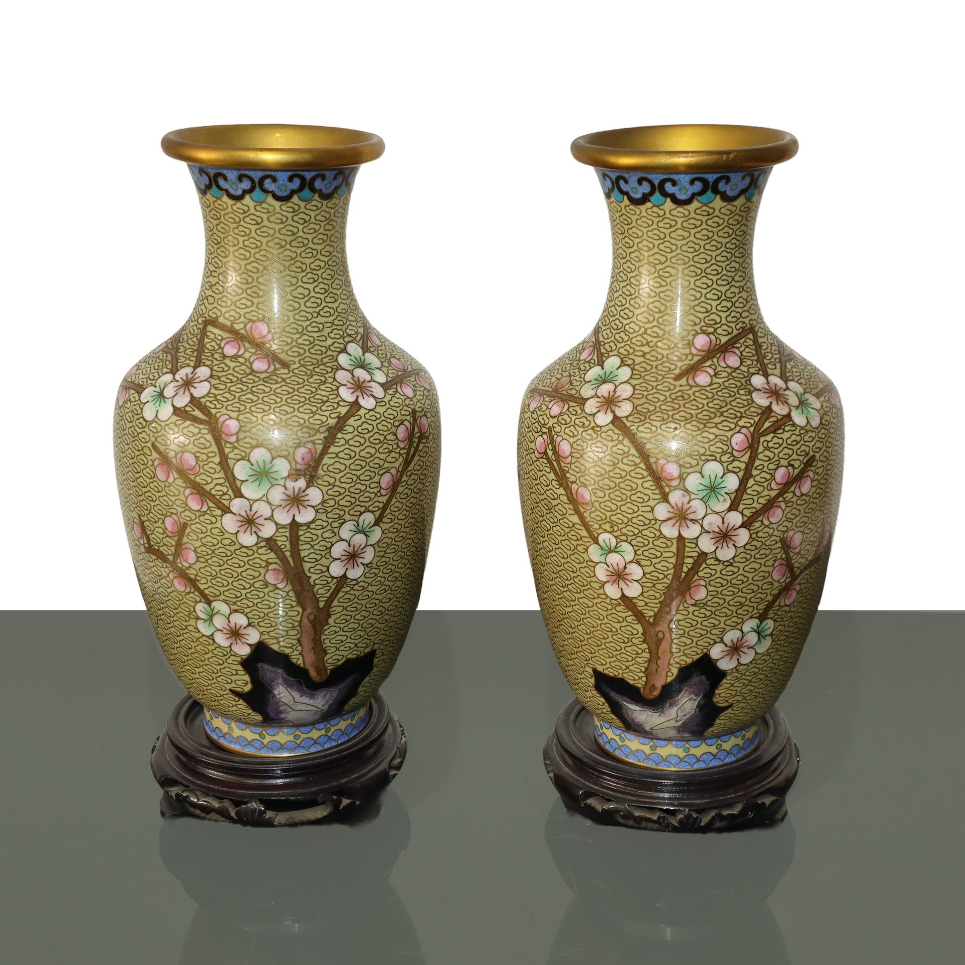 Lotto 51 | Coppia di vasetti cinesi cloisonnet decorati a fiori policromi, 20° secolo