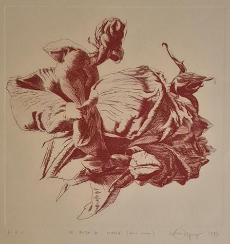 Wolfango (Bologna 1926 - 2017) Le rose di None (serie rossa), 1997. Acquaforte. Esemplare PdA. Titolato, numerato P.d.a. firmato a matita in basso sul margine. Cm. (foglio) 60x50