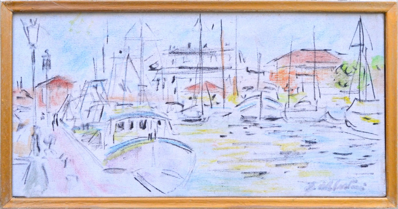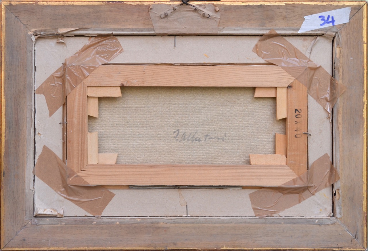 Filippo Albertoni (Reggio Emilia 1930 - Bologna 2011). Marina. Olio su tela. Firmato in basso a destra F. Albertoni. Al verso firmat. F. Albertoni. Con cornice. Cm. 20x40.