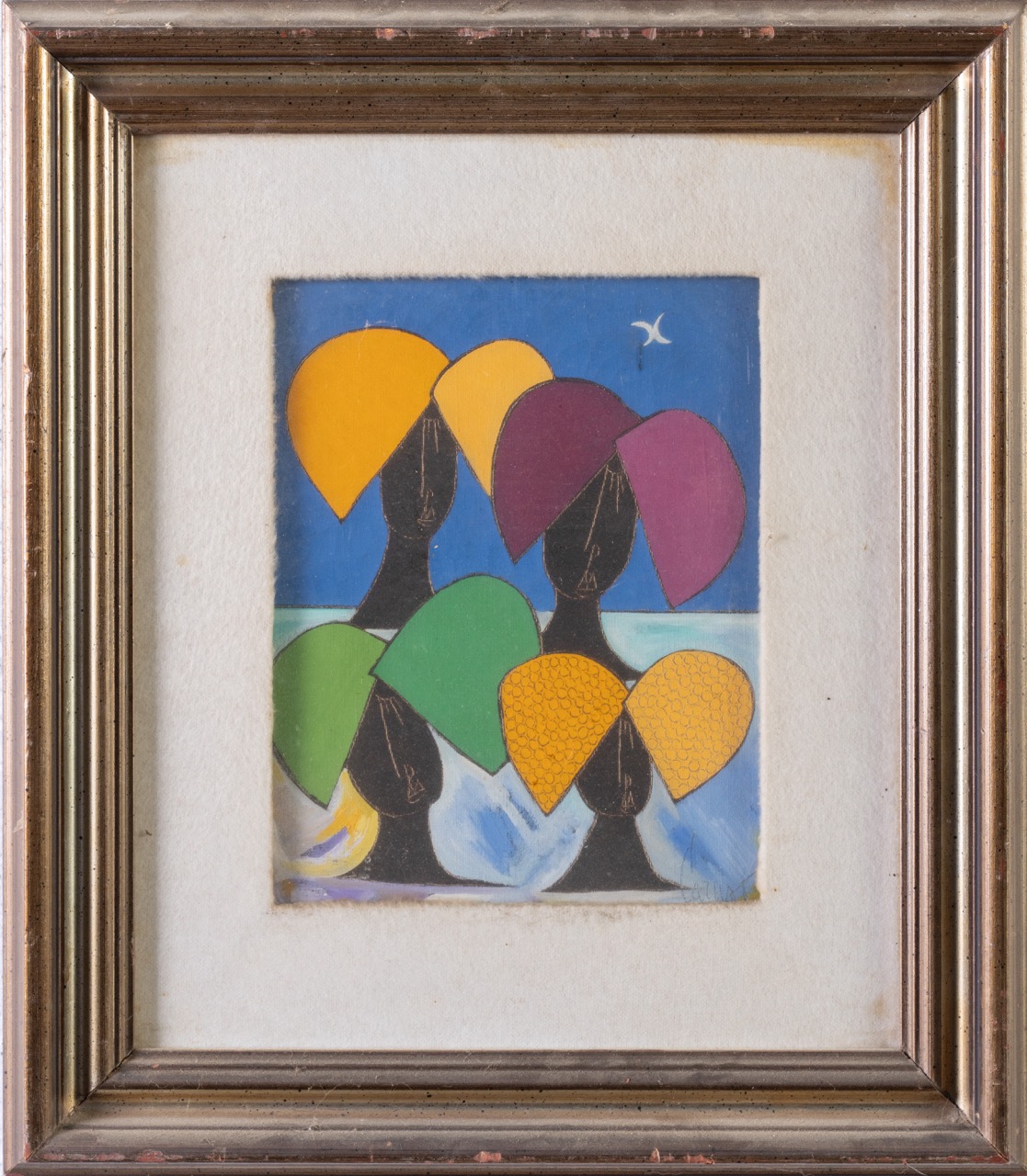 Pino Caruso (Bengasi 1922 - Roma 1993). Figure femminili con cappelli colorati, 1976.