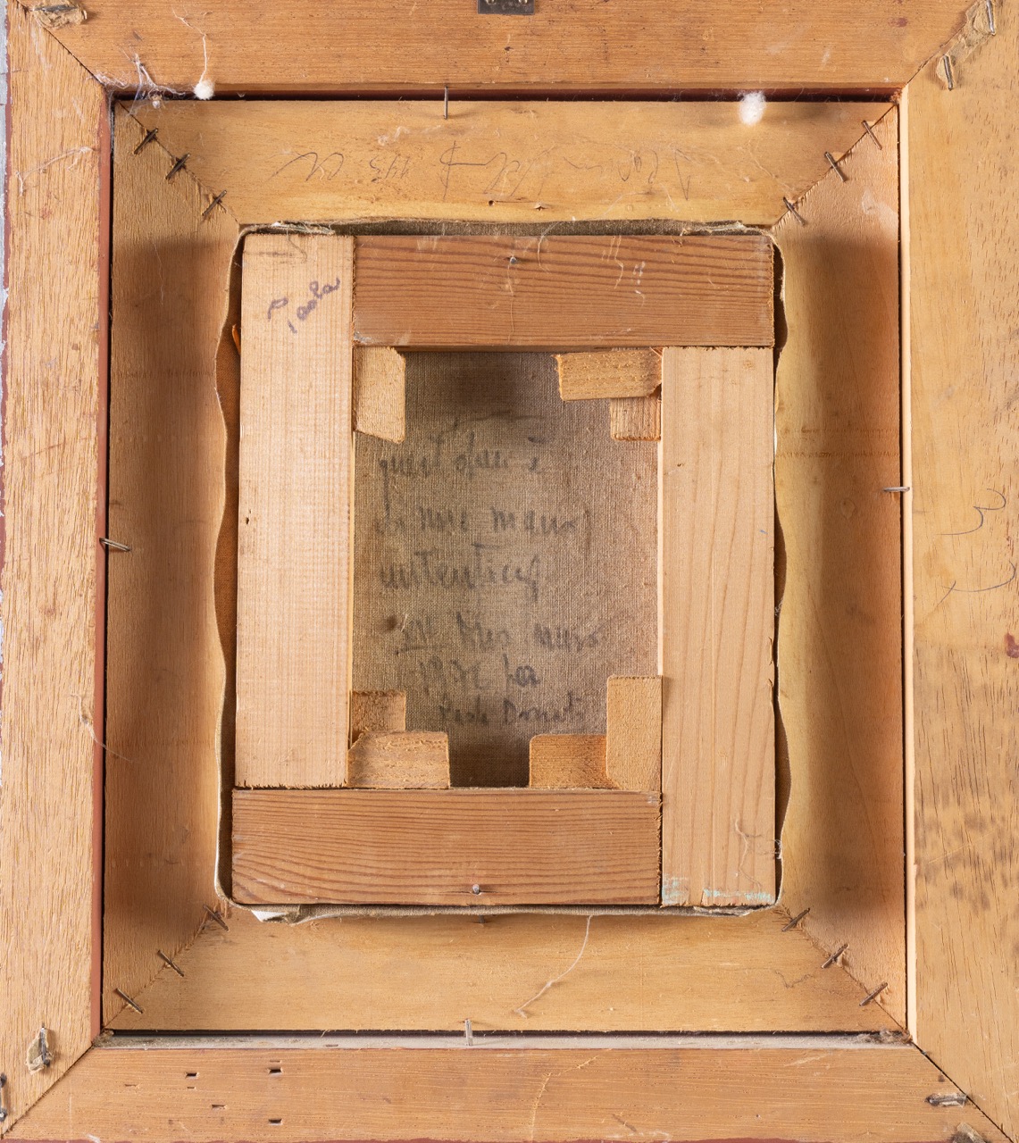 Pino Caruso (Bengasi 1922 - Roma 1993). Figure femminili con cappelli colorati, 1976. Olio su tela. Al verso presente autentica firmata dall'artista. Cm. 24x19. In cornice cm. 43x62.