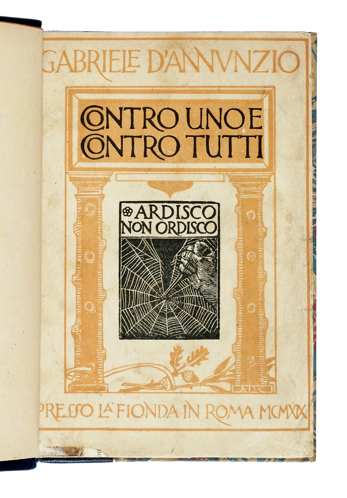 D'Annunzio Gabriele, Dedica autografa su libro Contro uno e contro tutti....