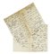 Manoscritti a matita firmate o siglate. Dimensioni varie. (4) I Lettera: spedita dalla villetta in Versilia (la maisonnette), dove la Duse si rifugiò dopo la fine dell'amore con D'Annunzio, per dimenticare in solitudine il Vate, ma anche per godere dell'aria di mare, benefica per il suo enfisema polmonare. La maisonnette, che vide tra gli ospiti della Duse anche Isadora Duncan, sarà ritratta e descritta molti anni dopo da Galileo Chini in un dipinto dal titolo emblematico: La casa dell'oblio. Dimanche. Cherie, Amie, Ame, voici une semaine, et maintenant voici mon adresse. Avons trouvé au bord de la mer une maisonnette, et dans l'absolue solitude je fais ma cure d'air et immobilité comme le bon docteur da Badenweiler l'avait conseillé. L'aria è balsamo, qui e il sole e la gioia del mare e la terra, mia, italiana. Senza avvedermene ero depressa di nostalgia a Badenweiler, e se veramente devo passare il resto di vita mia ferma e sofferente, preferisco sia al mio mare, e in casa mia! [...] Il paese è pieno di bagnanti ma qui è un piccolo piccolo villino fra Viareggio e Motrone, nella bella curva fra Forte dei Marmi e Viareggio [...] Resto tutto il giorno sdraiata, come a letto, in pineta [...] Ho letto ieri una bella preghiera ... (dell'anima alla natura) e ve la manderò quando avrò forza di copiarla. Amandovi di tutto cuore E Du[se]. Questa II Lettera nella quale la Duse fa riferimento è al celebre fisiatra Augusto Murri, pioniere nelle cure delle malattie polmonari, come l'enfisema che affliggeva la Duse. Martedì. Chère Trude, in ritardo rispondo perché presa di qua e di là. Cara, vorrei vanto esservi utile presso Murri, ma Murri è così grande che la sola sua anima accoglie alla prima domanda, ogni creatura che ha confiance in lui [...] anch'io insistetti l'estate scorso, a chiedere una grazia, che la bilancia del bene e del male, ha tenuto e tiene in un un tristo equilibrio e, senza accordare a lui che tanto bene ha fatto, un che di magnanimità, che gli sarebbe dovuta (così credo) [...] A voi di cuore, fuggendo per via Nomentana. E Du[se]. III Lettera: Suis un peu mieux, mais la nuit très souffrante. Docteur ordonne repos. Mon cœur nous rapproche. Merci d'être si bonne et si noble. Merci pour les bonbons. N'envoyez pas, je ne peux rien prendre. Merci. A vous de cœur. E Du[se]. Accorato riferimento alla grave malattia della Duse. IV Lettera: Lunedì. Non so più niente di Ger. Domando notizie. Io ho interrotto il lavoro al mattino. La corrente dello spirito s'è interrotta, e non riesco rimetterla in risposta diretta. Vado stamane da Hildebrand. Non abitano nella mia casa, ma in una accanto [...] Sperai l'altra sera trovare [...] Trude, ma niente Ger né Trude. Prego notizie. Saluti di cuore. E Du[se] Scrivere mi è sempre importante. Chiedendo notizie dell'amica Gertrude von Huegelal, la Duse nomina lo scultore tedesco Adolf von Hildebrand, che abitò a lungo a Firenze. L'artista, che aveva lo studio accanto alla residenza fiorentina della Duse, è l'autore del celebre medaglione in bronzo che la ritrae di profilo.