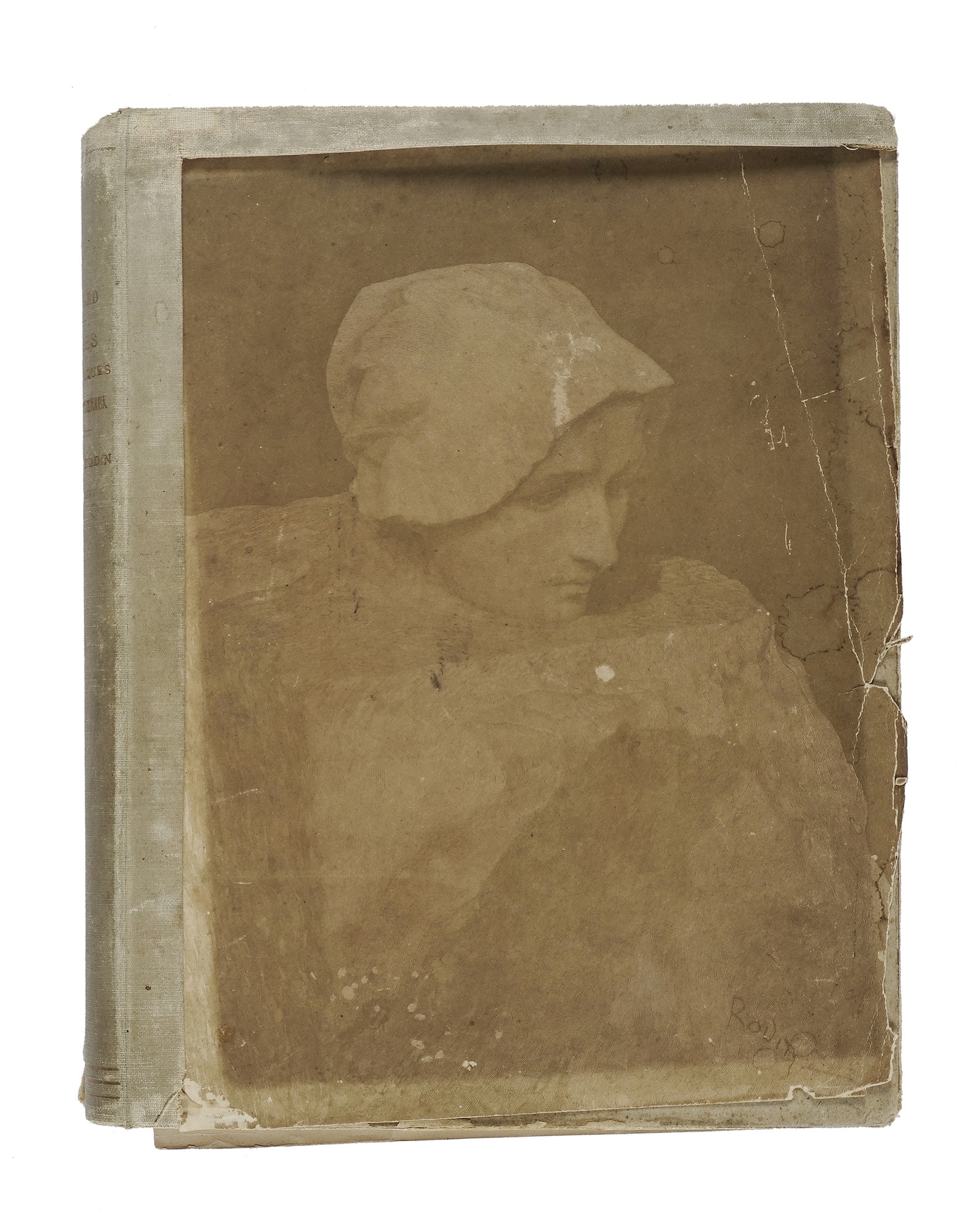Manoscritto a inchiostro bruno. Volume e legatura con difetti, in particolare distacchi di pagine e gore di umidità. (1) Rodin scrive: plus on etudie mieux on voit la beauté Aug. Rodin. Accanto alla citazione, ex libris dell'artista Emilia Cimino Folliero.