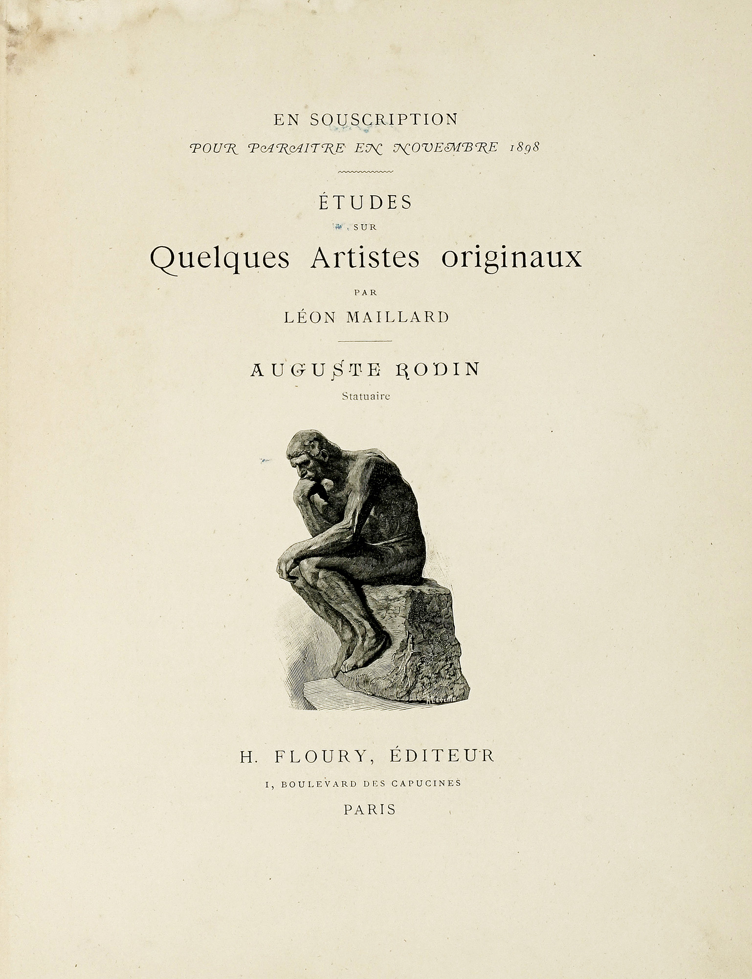Rodin Auguste, Citazione autografa firmata su libro sul volume di Léon Mallard: Etudes sur quelques artistes originaux Auguste Rodin edizione H. Floury – Paris, 1898. XIX secolo.
