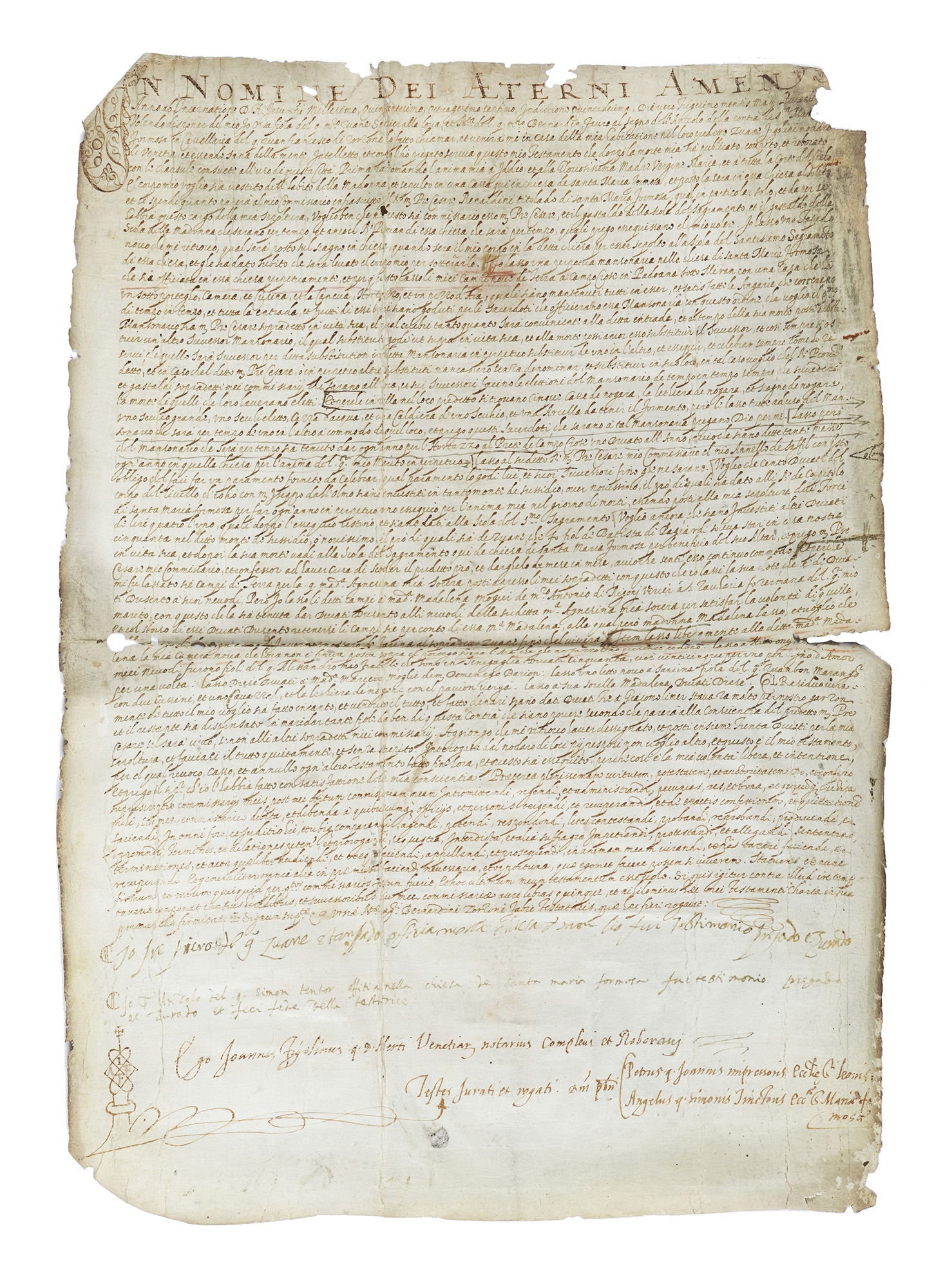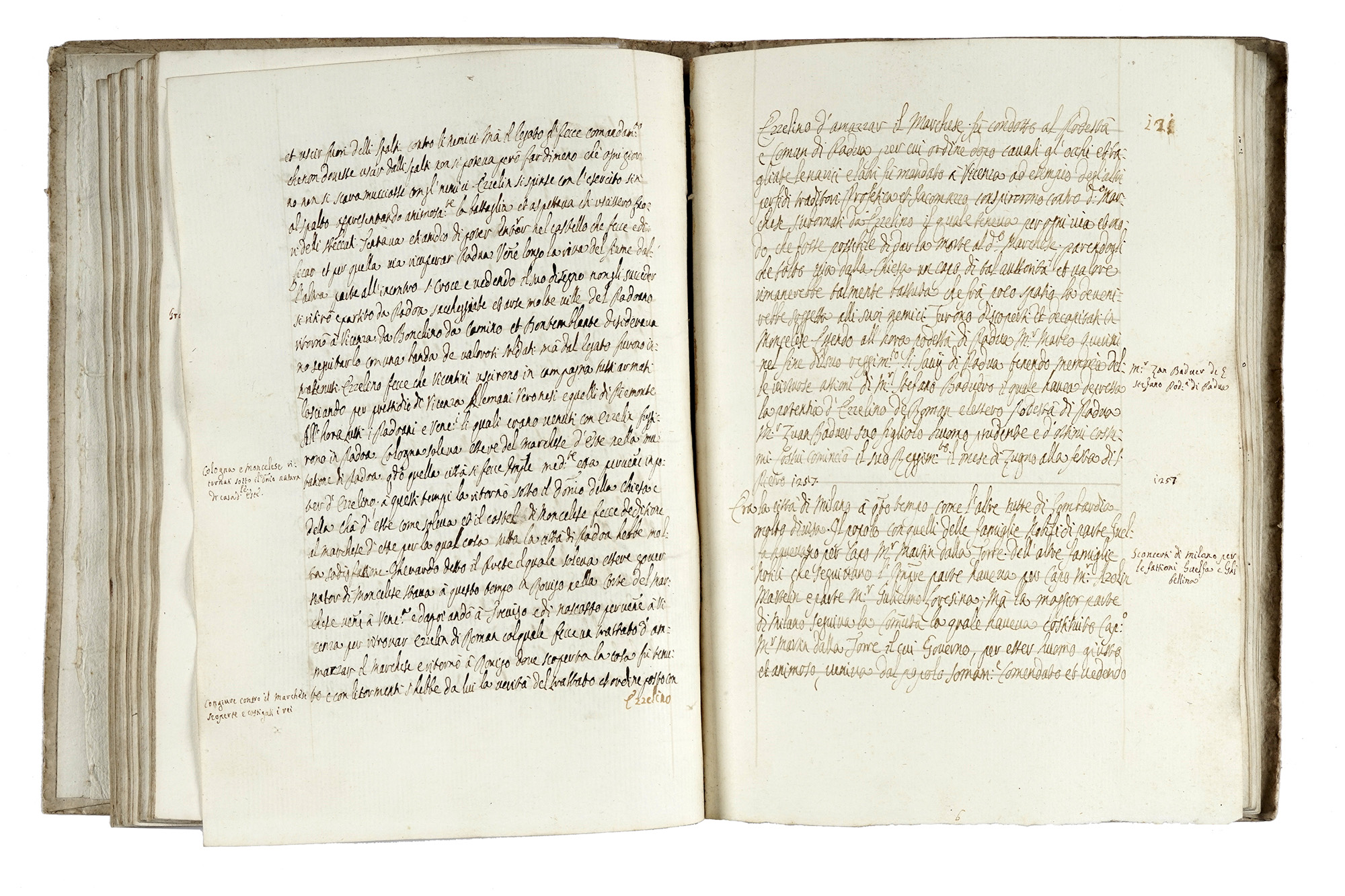 3 volumi (260x190 mm). Carte 1-216, 217-434, 435-626. Manoscritti a inchiostro bruno. Non è presente la carta del frontespizio. L'opera inizia, a carta 1, con la Lettera di dedica Al Sere.mo Prencipe alli Magnifici e Clarissimi Senatori e Gentil'Homeni dell'Ecc.ma Repubblica Veneta l'humil Servo Ioan Giacomo Caroldo Sec.o dell'Ill. mo Consiglio di dieci [...]: Sogliono gli uomini che vivono col discorso di ragione [...]. Incipit dell'opera: Attila re de Heruli partito de Scithia, passando per le terre [...]. Explicit (al terzo volume): [...] essendo hormai venuta l'hora che andiate a riposare. Carta pesante, molto ben conservata. Cartonatura antica un po' allentata. SI AGGIUNGE: 1 atto notarile di ambito veneziano. Datato 1587. SI AGGIUNGONO: 3 fascicoli cartonati contenenti vari documenti (atti notarili) relativi alla cessione vitalizia e a un processo relativo ad un possesso relativo alla famiglia Morosini. Datati 1799-1805. (5) I DOCUMENTO: Il manoscritto contiene una cronaca della città di Venezia composta in volgare. E' suddivisa in 10 libri, dalla fondazione della città alla morte del doge Andrea Contarini (1382). Gian Giacomo Caroldo (c. 1480-1538/9) è stato un funzionario di cancelleria veneziana, segretario della Repubblica di Venezia a Milano e cronachista. Secondo Pietro Bembo (Historie venete) Caroldo ebbe un ruolo importante anche nello svolgimento della trama diplomatica che portò alla Lega di Cambrai contro Venezia nel 1508, in cui la Repubblica di Venezia perse buona parte dei suoi possedimenti nell'Italia continentale.