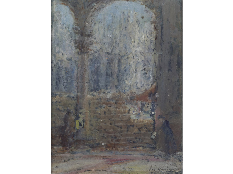 Luigi Mantovani (Milano 1880–1957) Portici Olio su compensato Firmato e datato 1945 Misure 23x17.5 cm