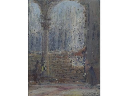 Luigi Mantovani (Milano 1880–1957) Portici Olio su compensato Firmato e...