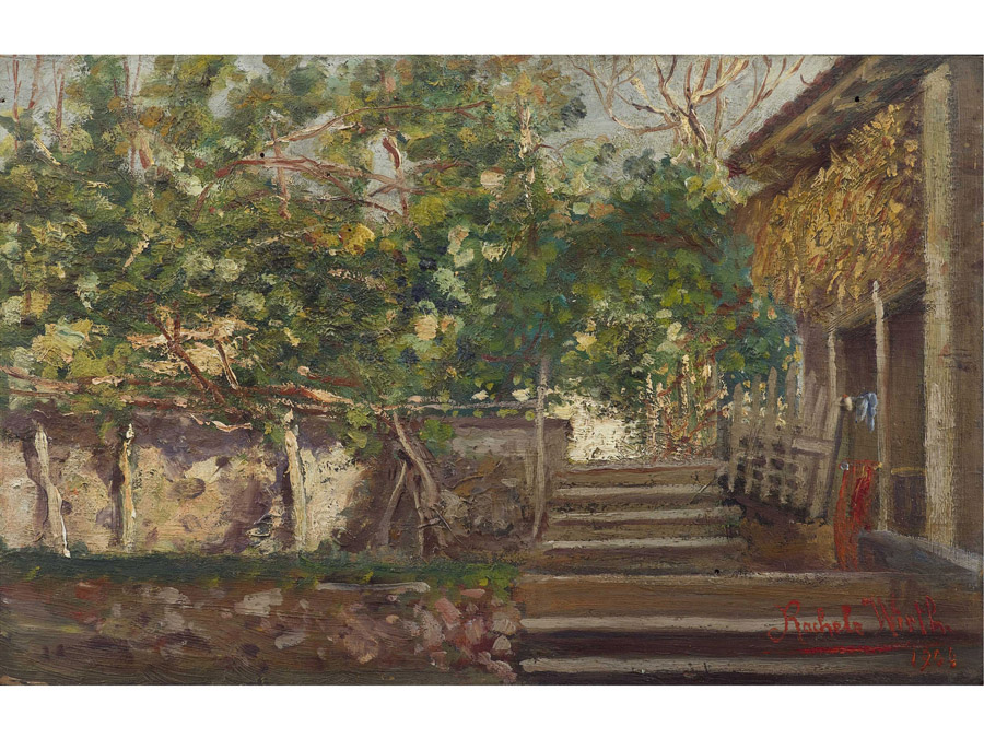 Rachele Wirth (XIX-XX secolo) Giardino Olio su tavoletta Firmato e datato...
