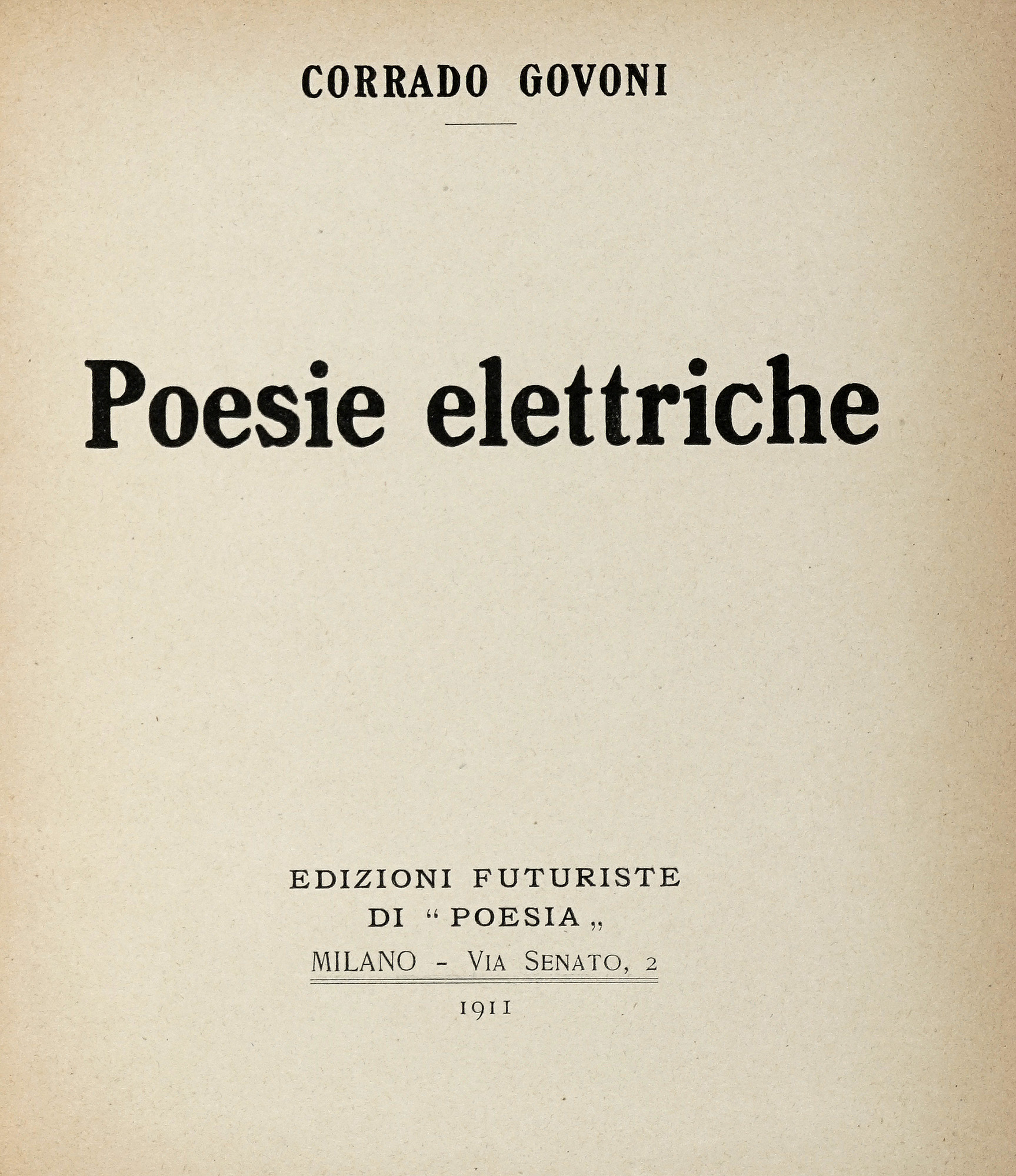 Govoni Corrado, Poesie elettriche. 5° migliaio. Milano: Edizioni Futuriste di Poesia, 1911.