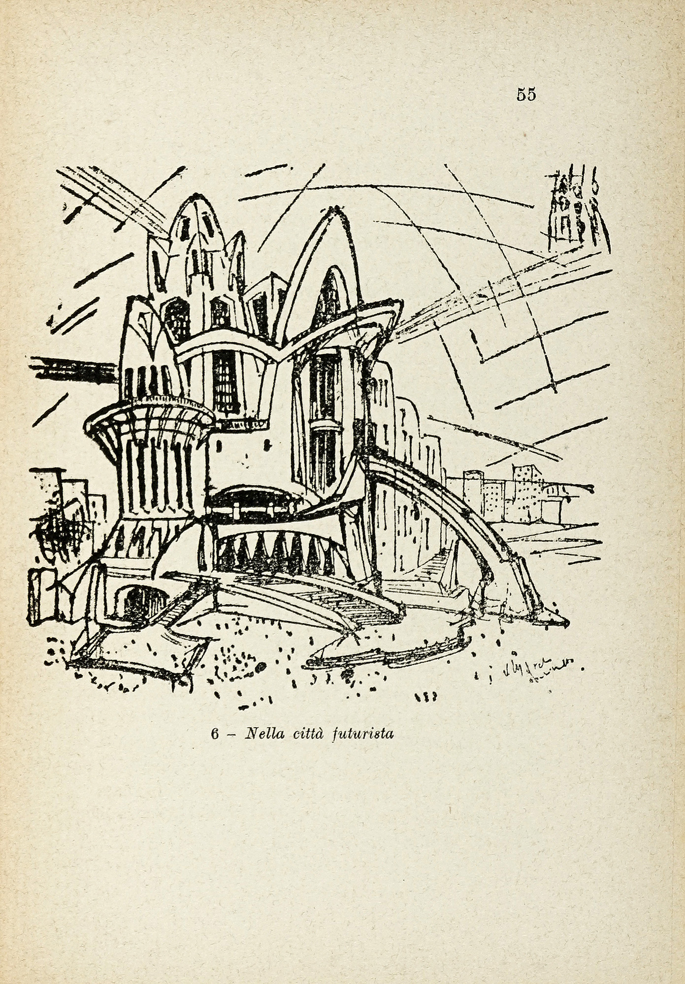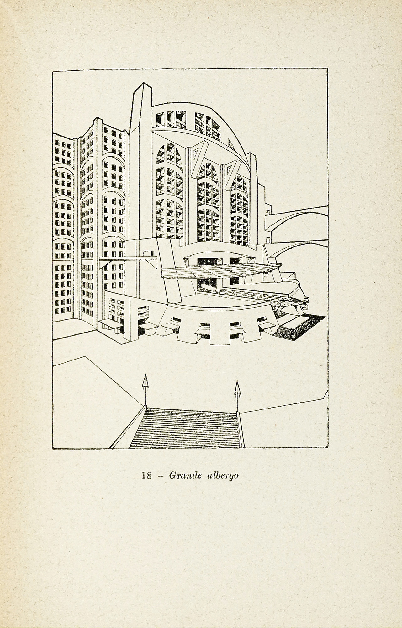 In-16° (mm 198x135). Pagine 102, [18]. Opera corredata da 27 disegni dell'artista, nel testo e in fine. Esemplare leggermente allentato, altrimenti buona copia. Brossura originale stampata in nero e rosso, con un'illustrazione al piatto anteriore. Fioriture e altri lievi difetti; piatto anteriore internamente staccato nella parte superiore. (1) Edizione originale della prima opera pubblicata da Virgilio Marchi, uno dei più celebri architetti futuristi, che già nel 1920 aveva firmato il Manifesto dell'architettura futurista - dinamica e nel 1922 esposto presso la casa d'arte Bragaglia con una mostra dal titolo Marchi architetto futurista. L'architetto livornese si ispira all'ideale di un'architettura dinamica, che preferisce l'obliquità, l'eccentricità, la policentricità e l'infinità di curve, alla prevalenza dell'orizzontale e del verticale; per Marchi l'architettura è non solo dinamica, ma anche 'espansiva infinita'. Tra i capitoli: Le architetture futuriste della casa d'arte Bragaglia a Roma; Architettura futurista dell'arredamento, del teatro e applicazione cinematografica; Il problema dell'architettura futurista; Poesia dell'architettura ect...