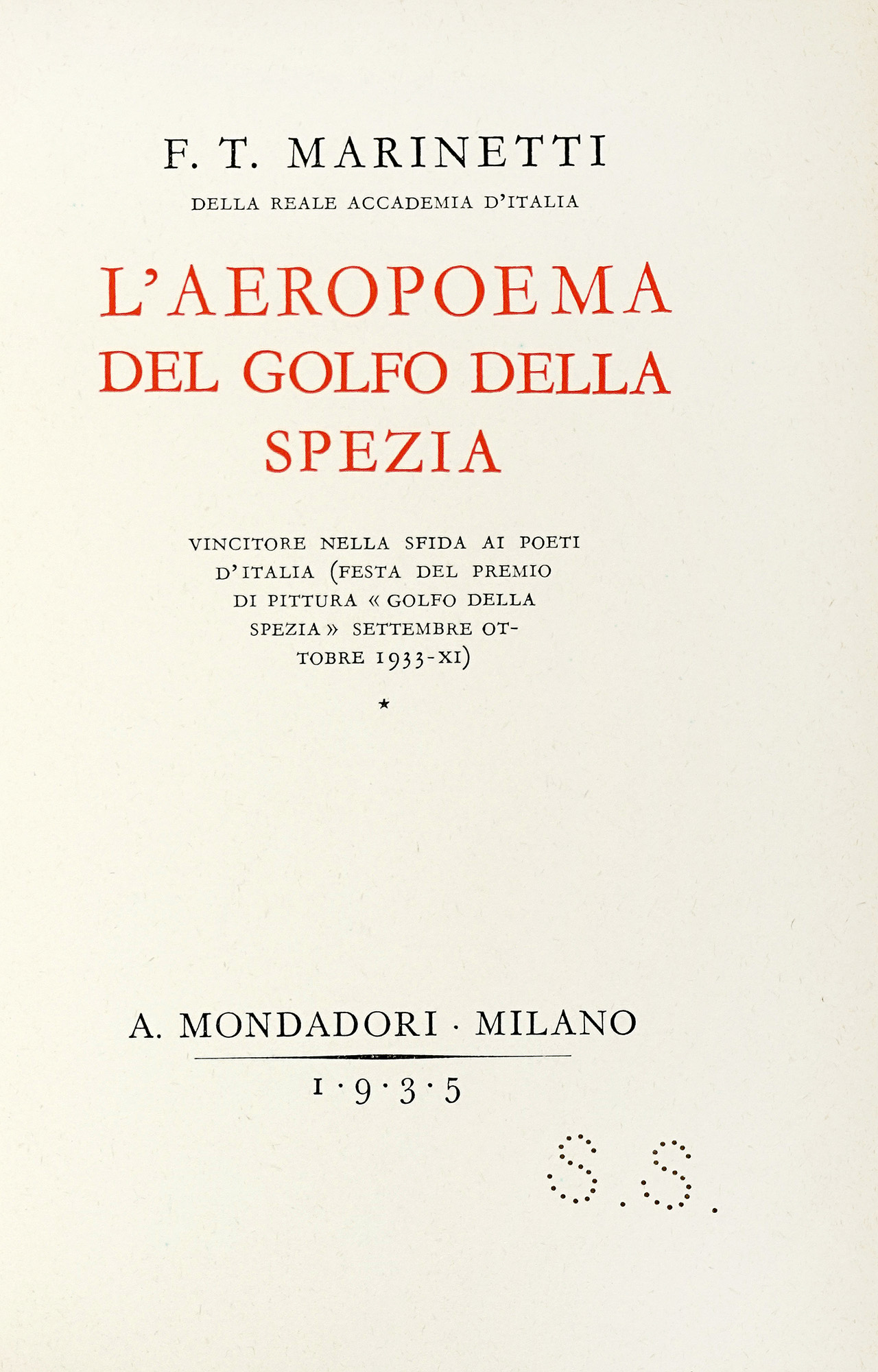Marinetti Filippo Tommaso, L'aeropoema del golfo della Spezia. Milano: Mondadori, 1935.